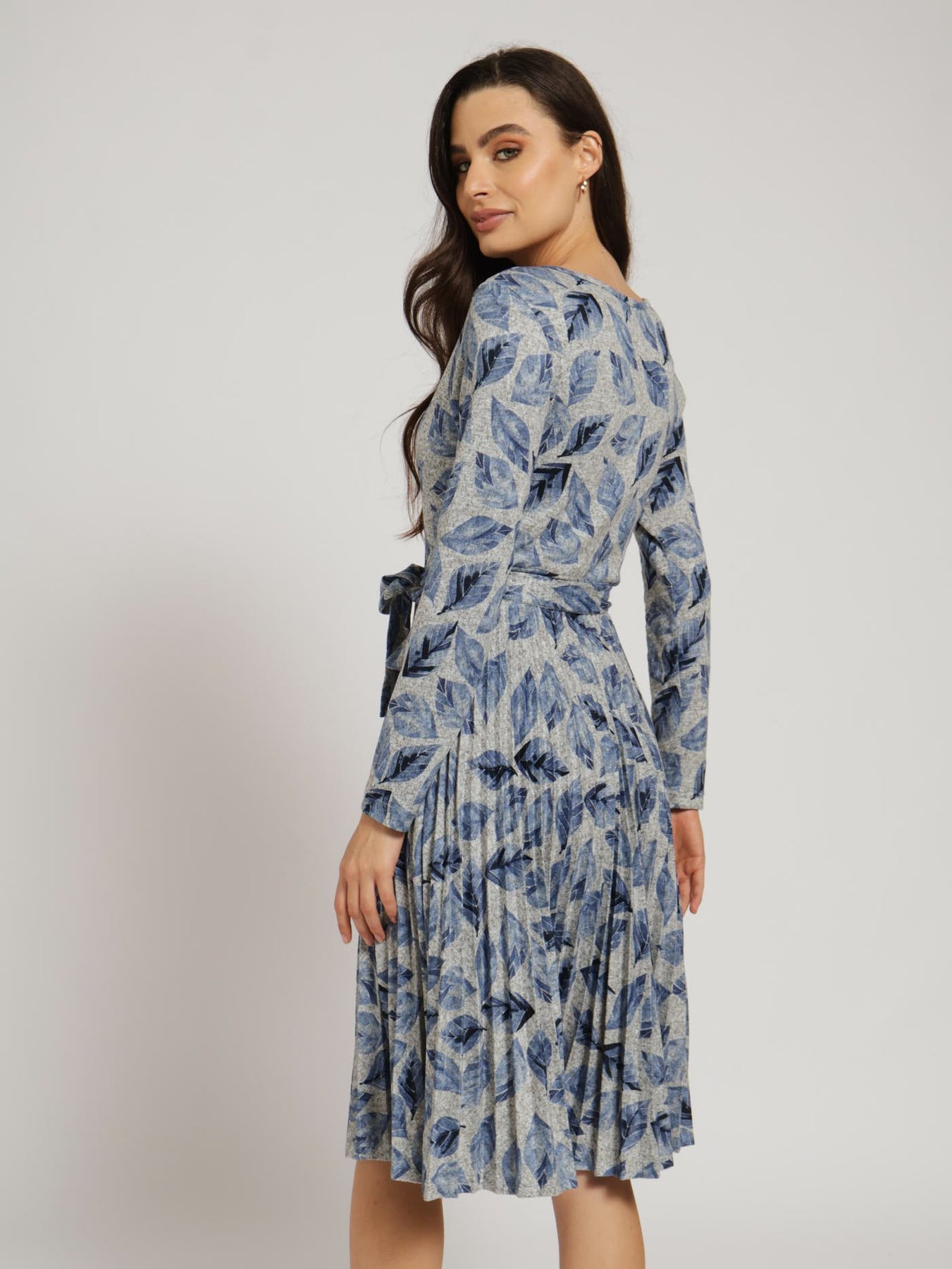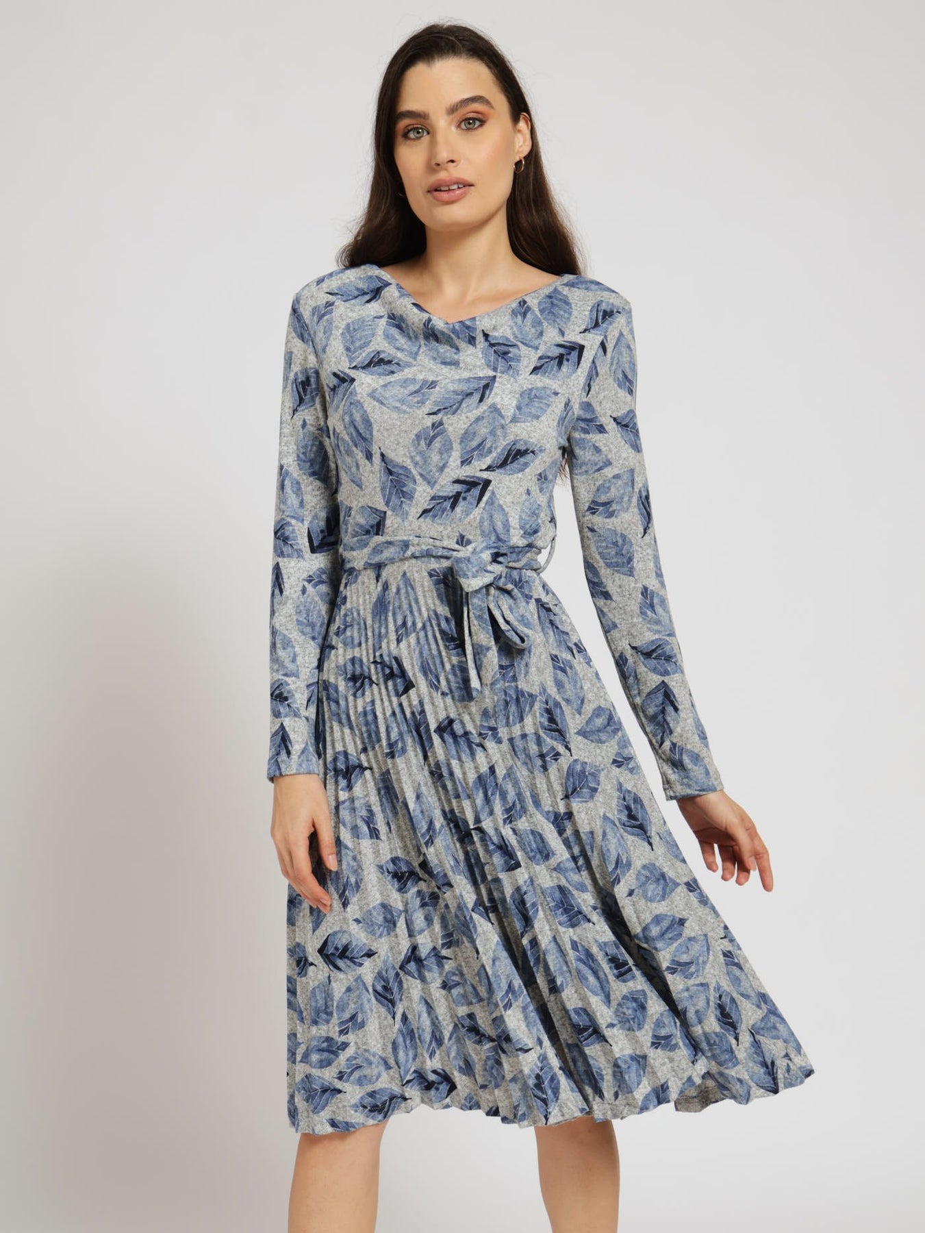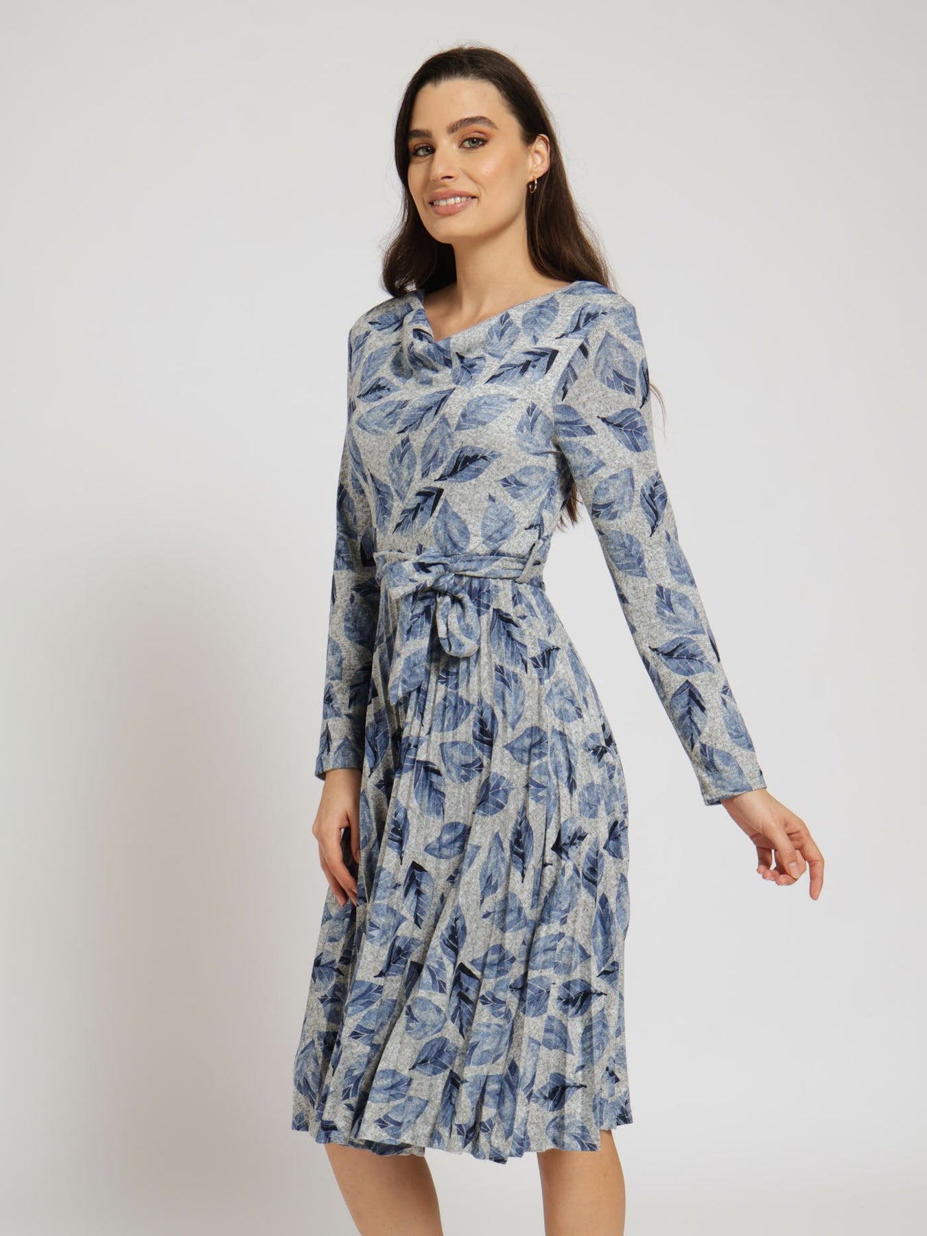 Cowl Neck Plated Cut & Sew Dress - Grey