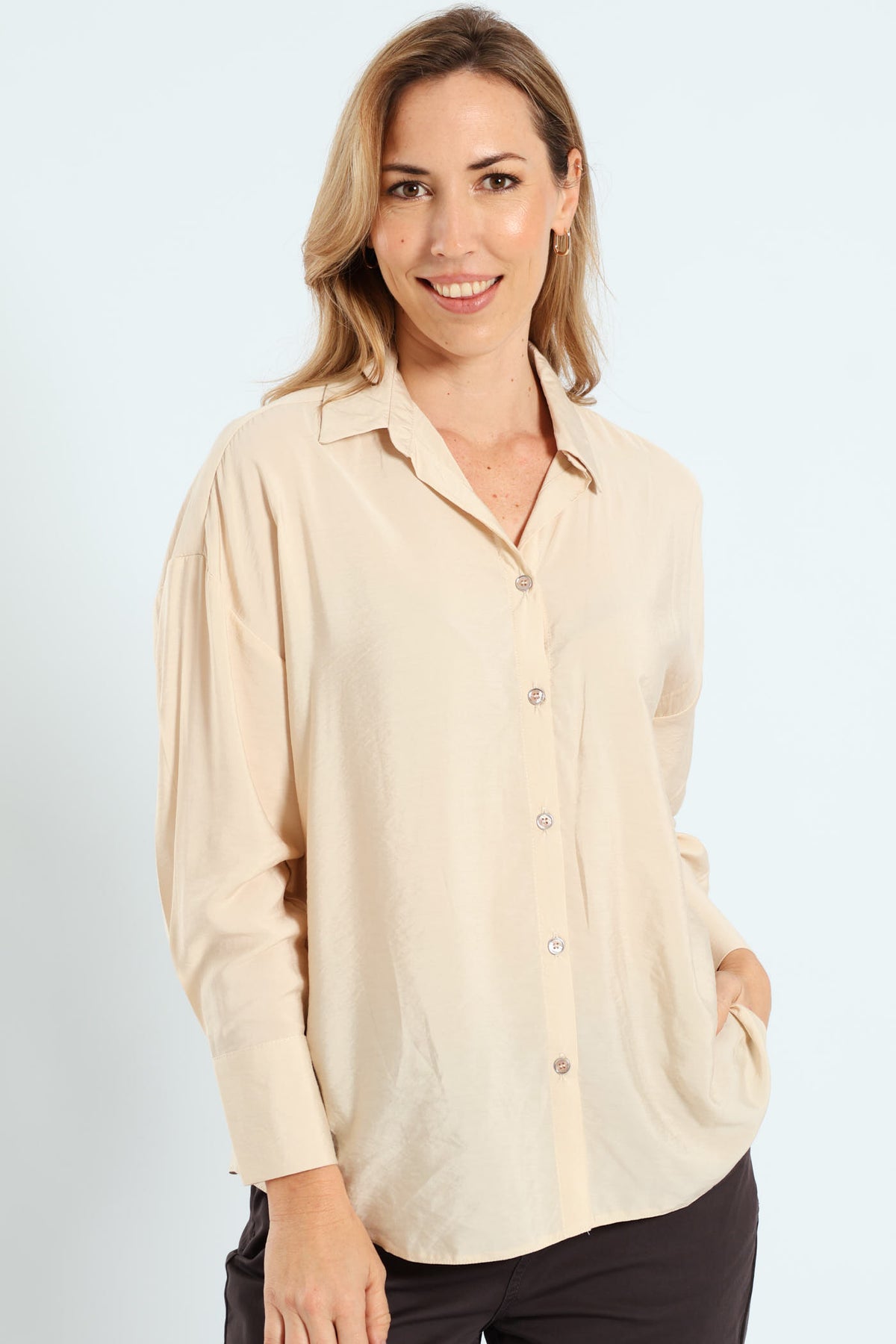 Cuff Detail Peach Finish Relaxed Shirt - Stone