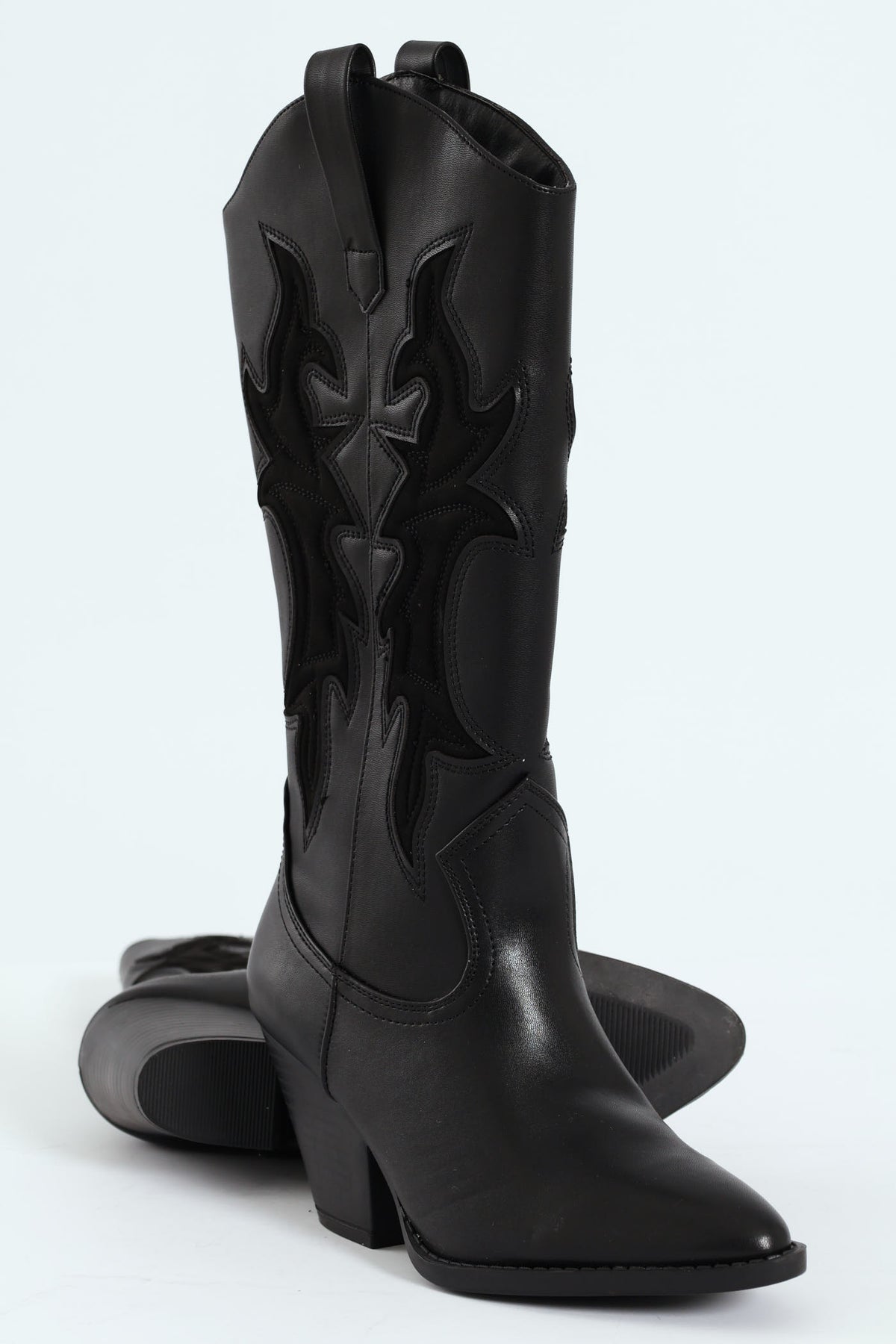 Detailed Cowboy Boot - Black