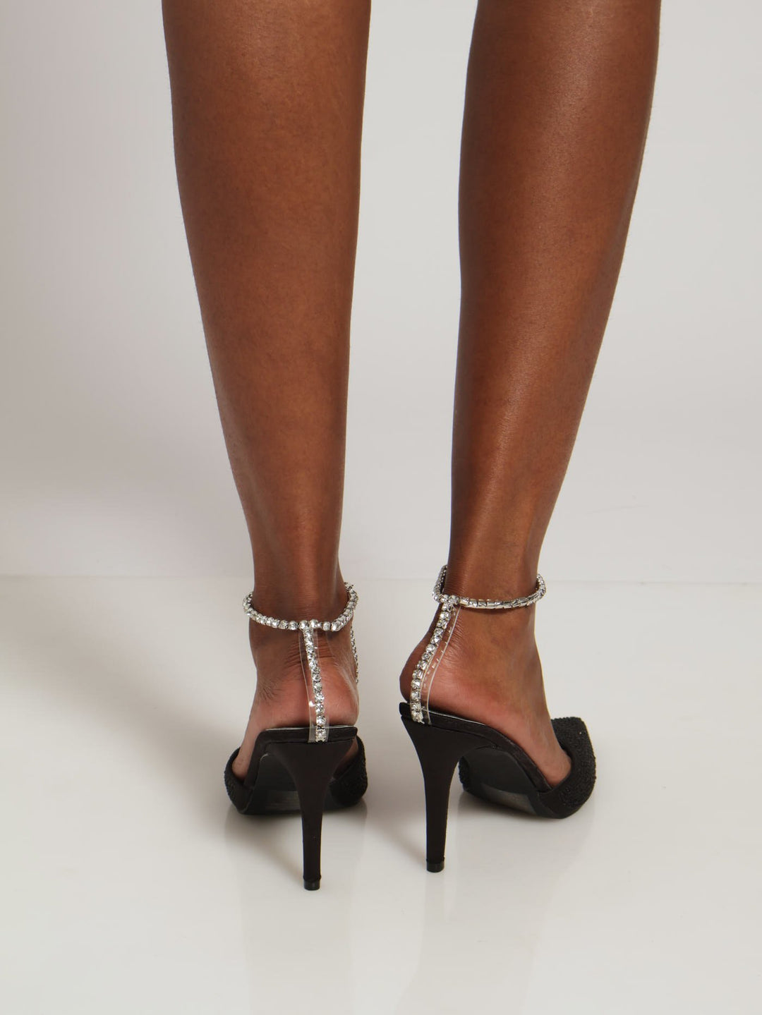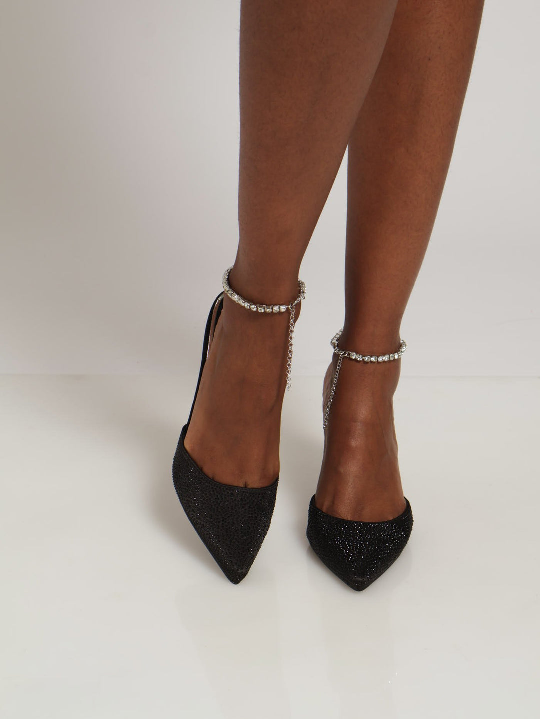 Diamante Ankle Chain Mule Heels - Black