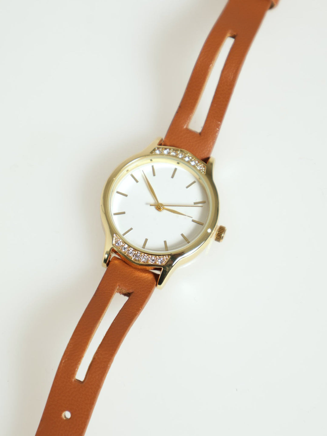 Diamante Detail Watch With Cutout Strap - Gold