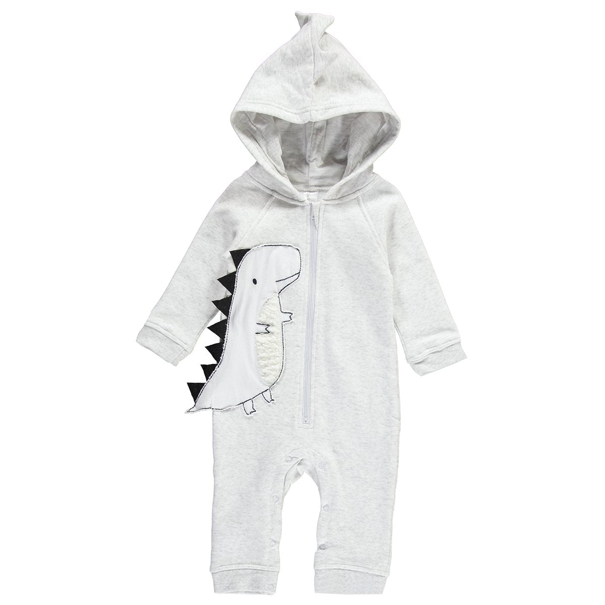 We believe all babies deserve only the cutest and most charming clothing. A piece like this dinosaur romper with a 3d hood accent and zip closure is a cute must-have.