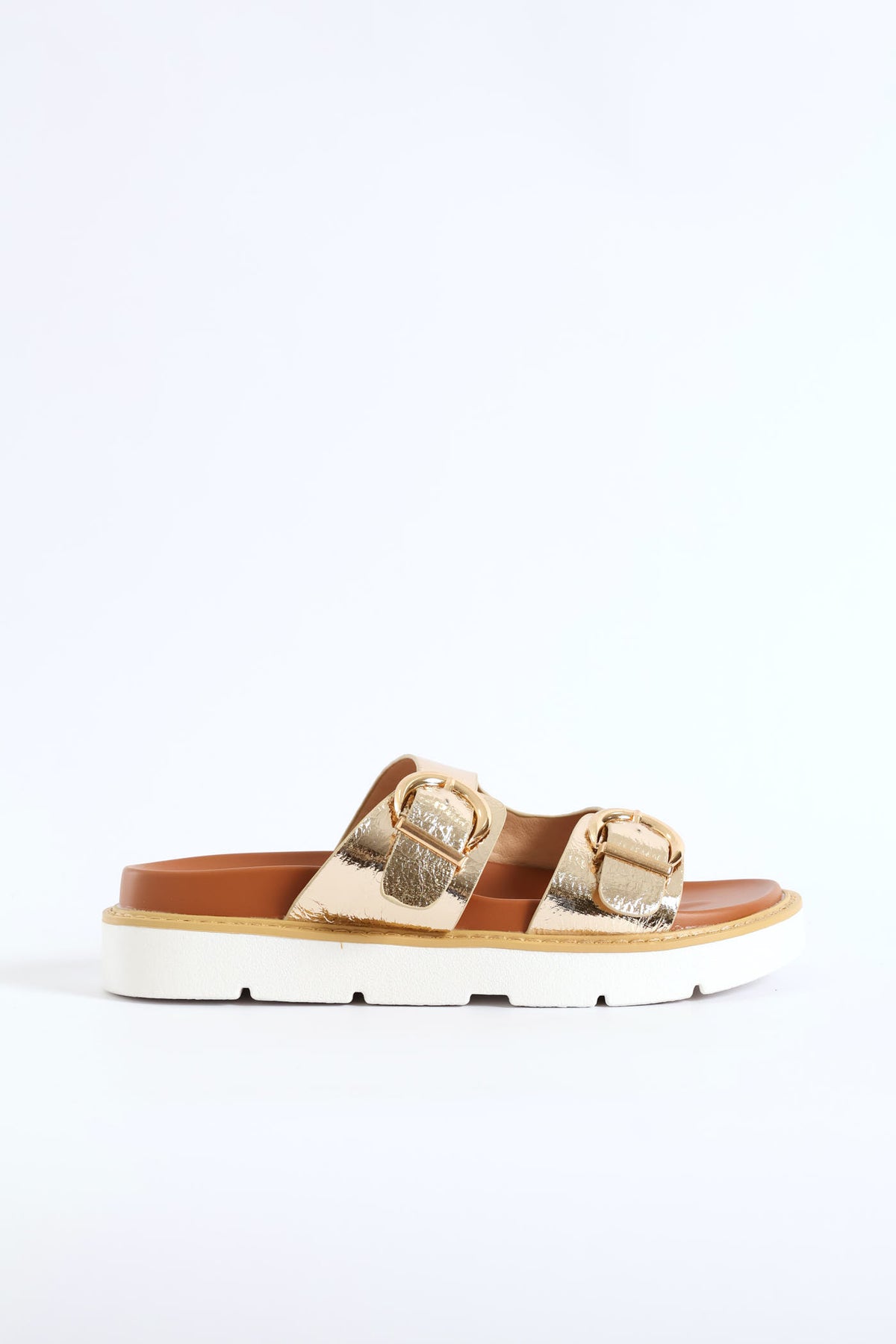 Double Strap Footbed Chunky Sole Sandal - Gold