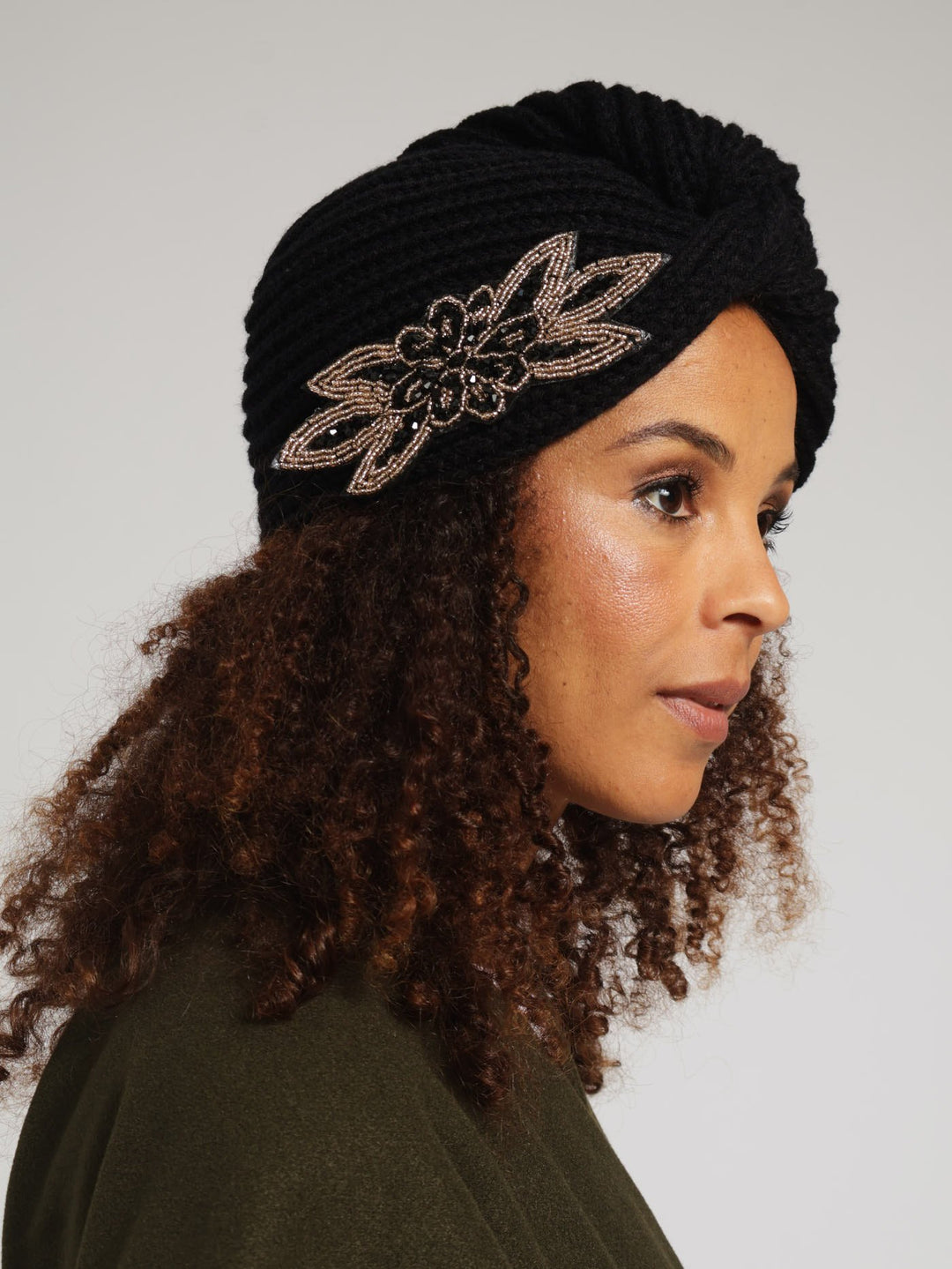 Embellished Knitted Turban - Black