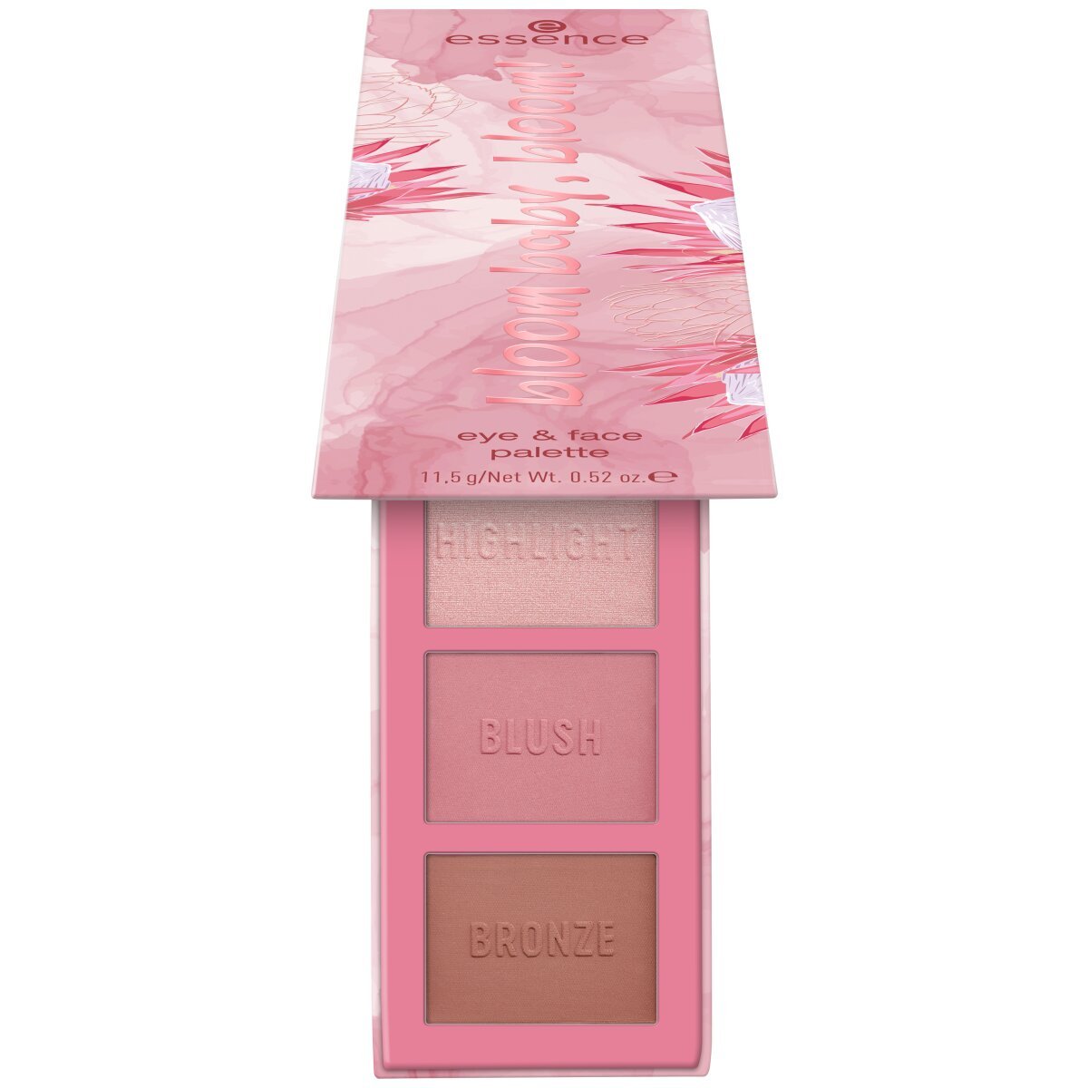 The essence bloom baby, bloom! eye & face palette is eyeshadow and face palette in one, and its integrated mirror make it perfect for a touch-up on the go.