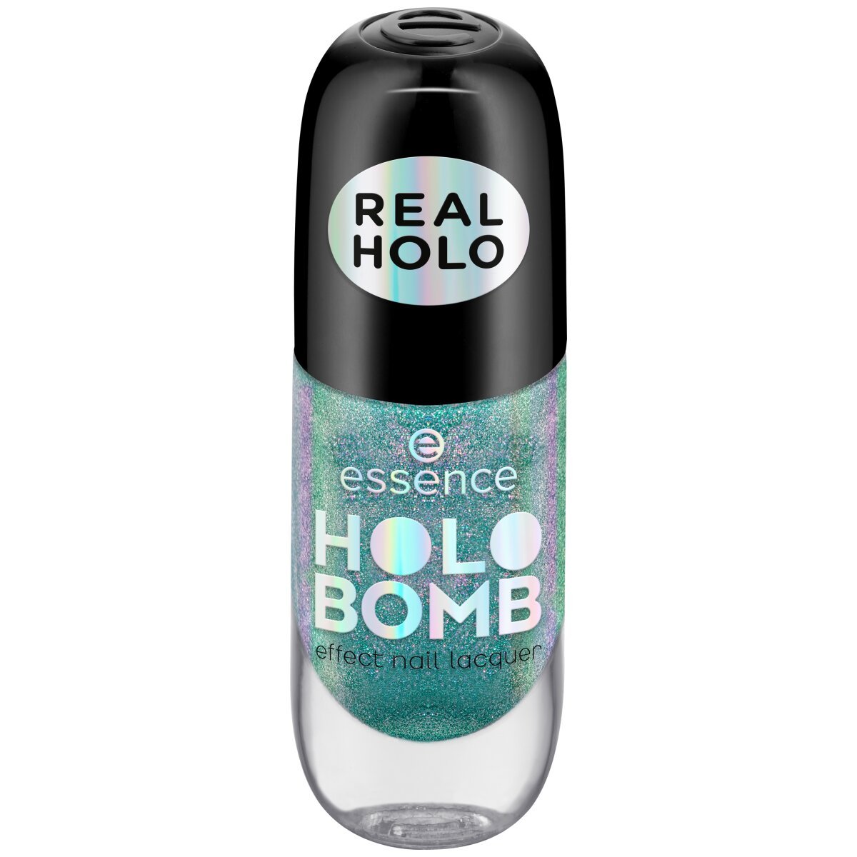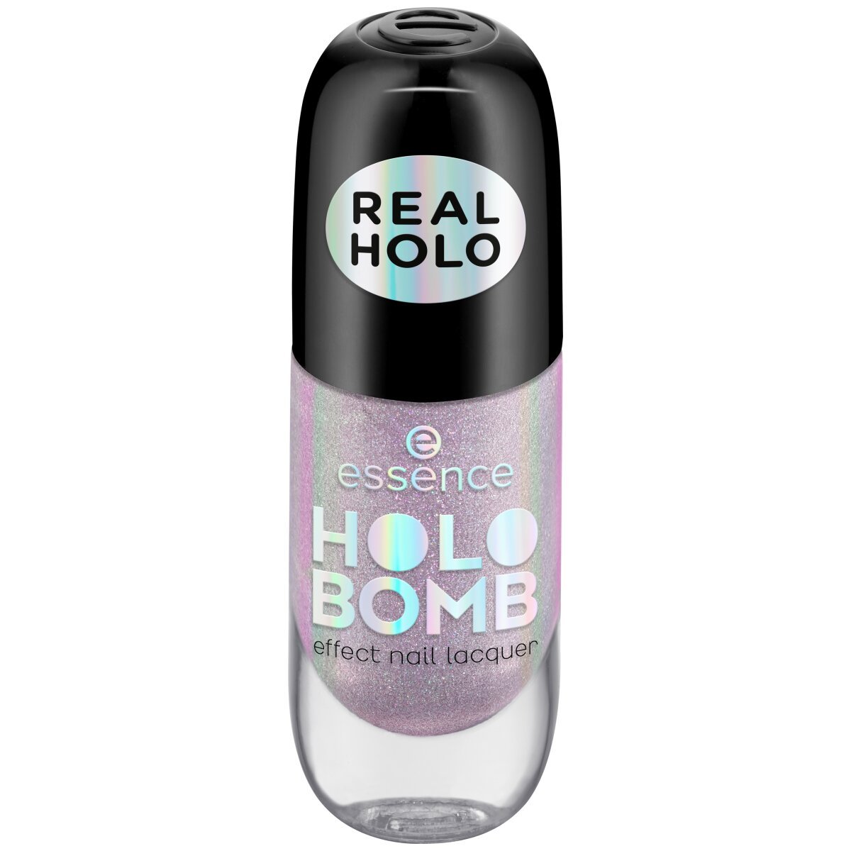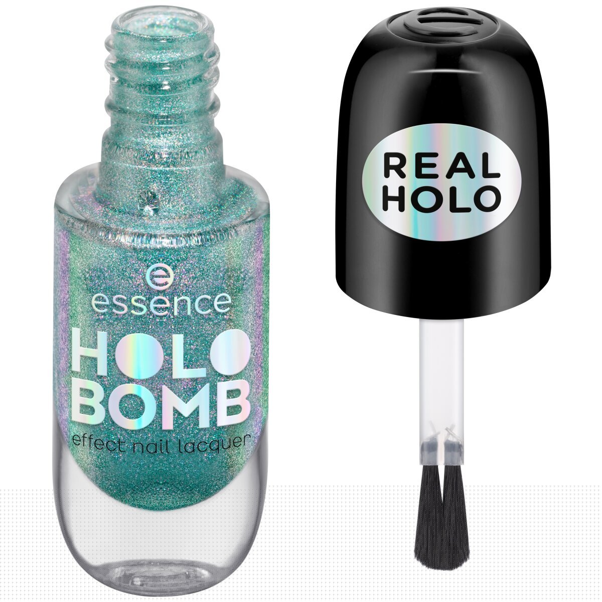 The essence HOLO BOMB effect nail lacquers have a unique finish thanks to holographic pigments that glow in every colour of the rainbow.