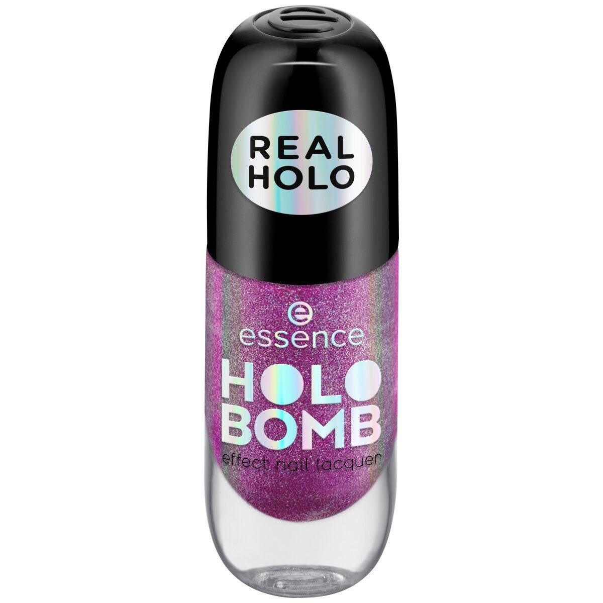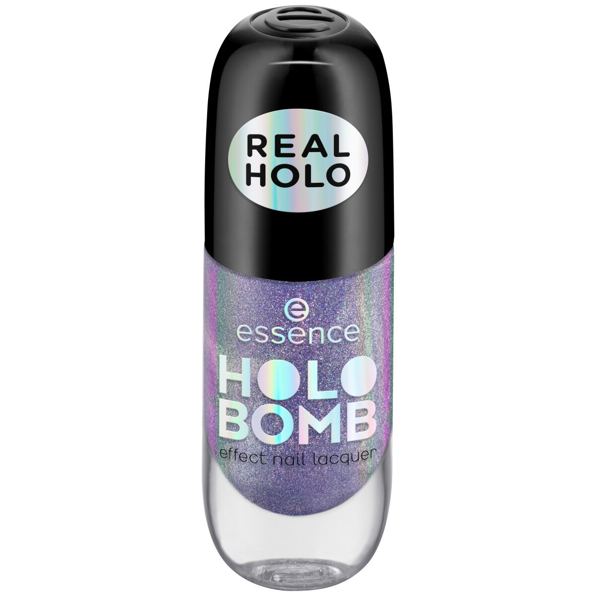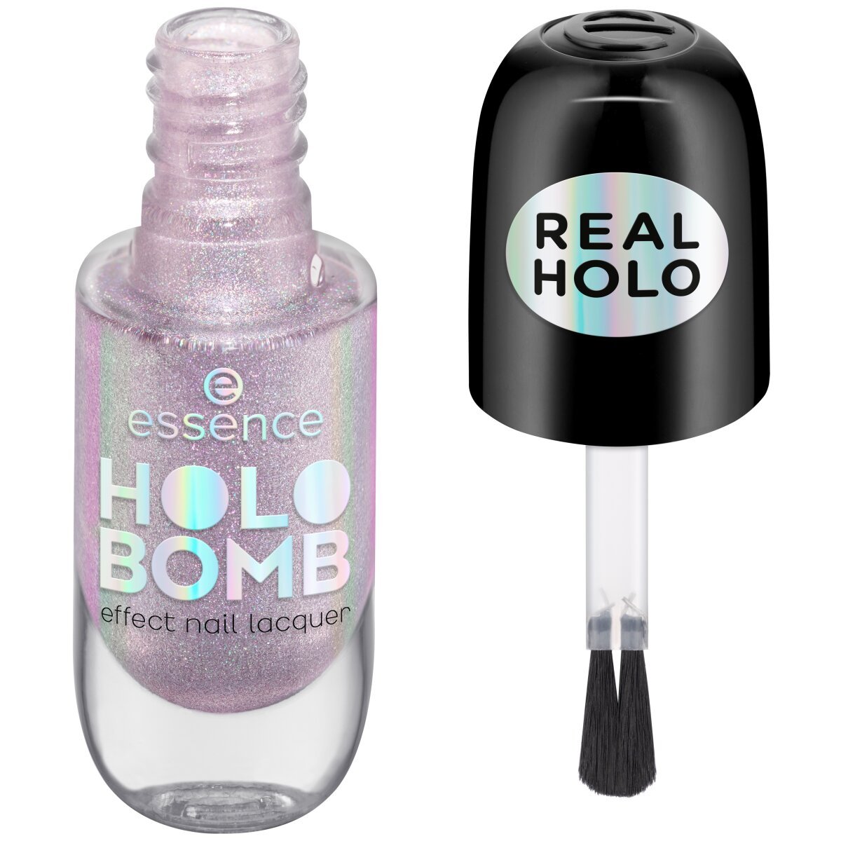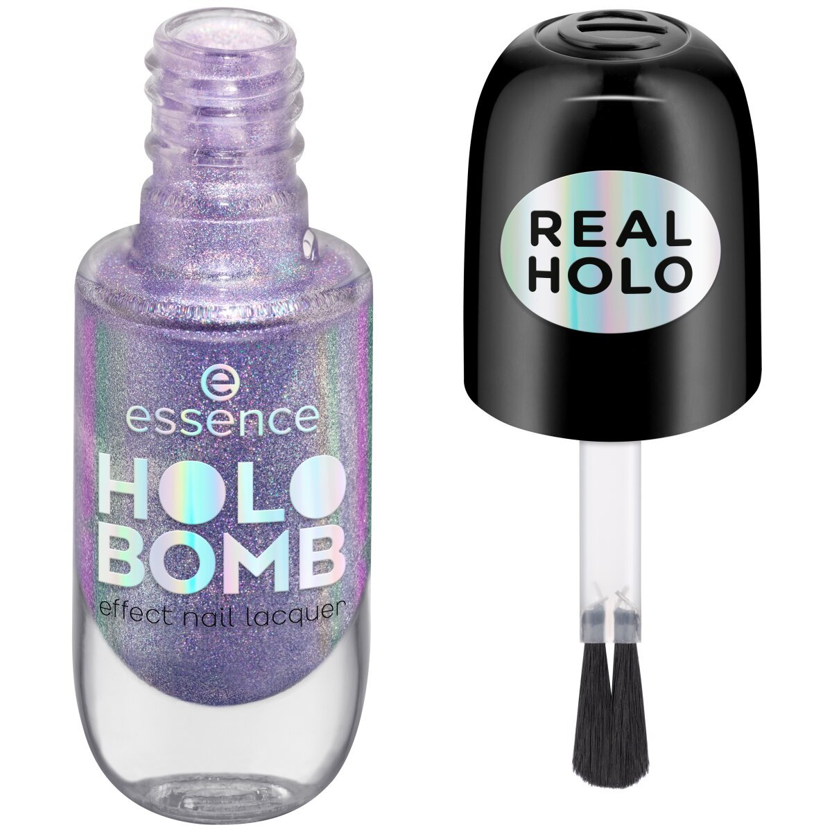 The essence HOLO BOMB effect nail lacquers have a unique finish thanks to holographic pigments that glow in every colour of the rainbow.