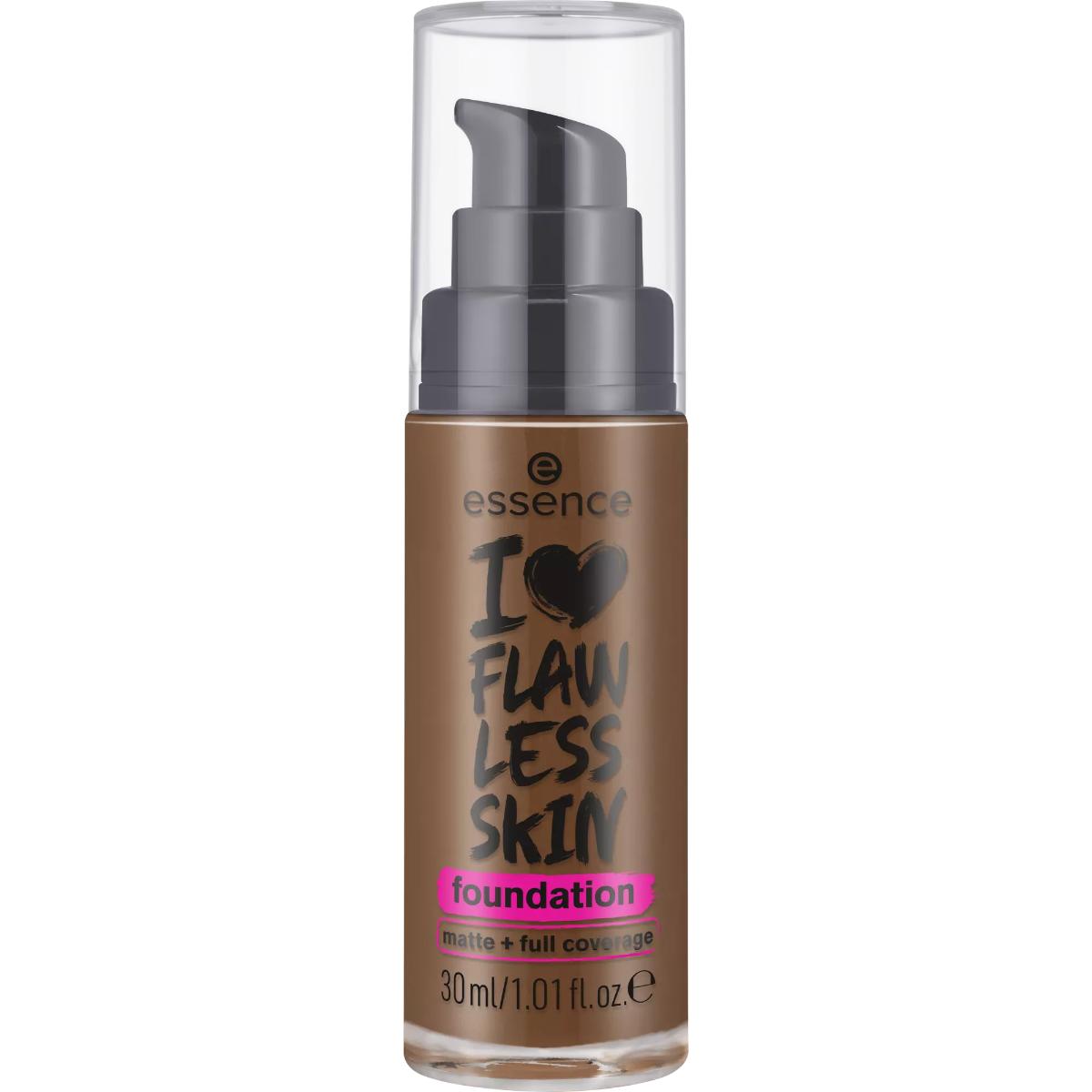 Perfect your skin tone with the essence I LOVE FLAWLESS SKIN foundation 200 Dark Deep. Despite its light texture, it offers a high coverage and leaves your skin with a natural matte finish without clogging your pores. And what’s even better, the SPF 20 protects your skin – perfect for a summery make-up look.