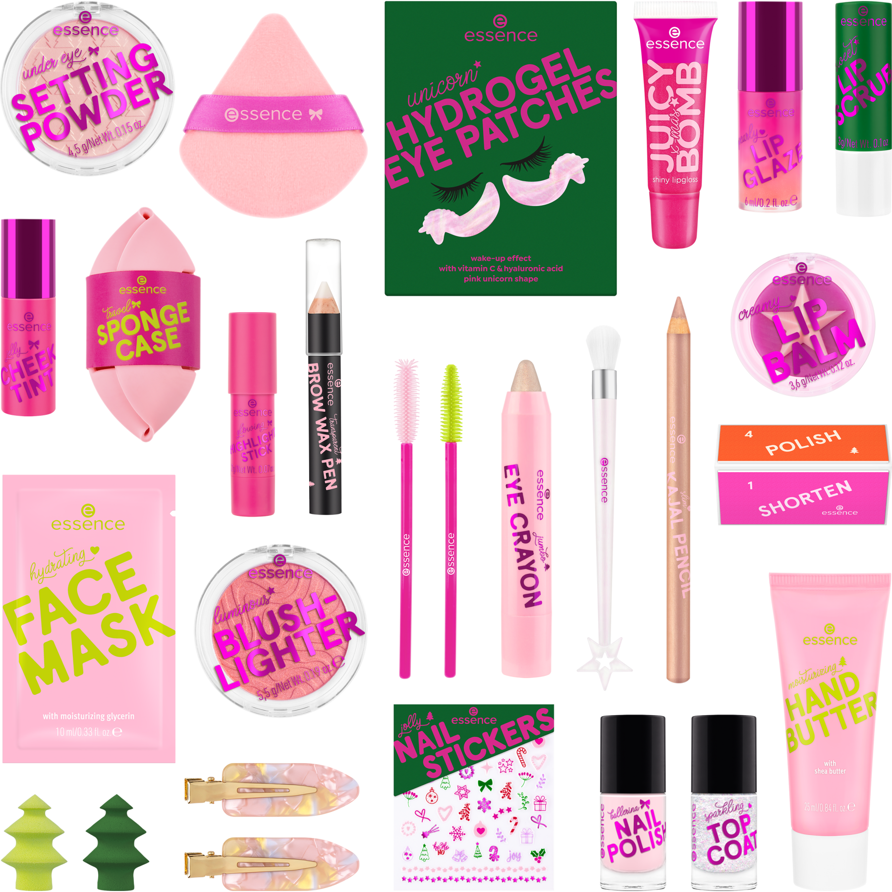 Rockin’ around the X-mas tree… To put on that joyful holiday make-up, use the 24 limited products you have collected out of the essence little X-MAS WONDER advent calendar. Behind each colourful door, you’ll discover one surprise for each day. Let it be products for rosy cheeks, dashing eyes or shiny lips: All items are perfectly coordinated to create holiday highlights. And if that’s not enough, the nail products and even some practical tools will enhance your spirits. This calendar brings warmth, fun and X-mas-miracles of into your holidays. Whether you’re treating yourself or someone you love, this gift is packed with magic. 24 exclusive, limited-edition treasures are waiting – may all your X-mas wishes come true! Open one door each day from December 1st to 24th and discover a new beauty surprise. Use the products step by step to build your ultimate holiday look. Whether it’s an enchanting make-up product or a practical tool – unwrap, apply, and glow your way through the season.