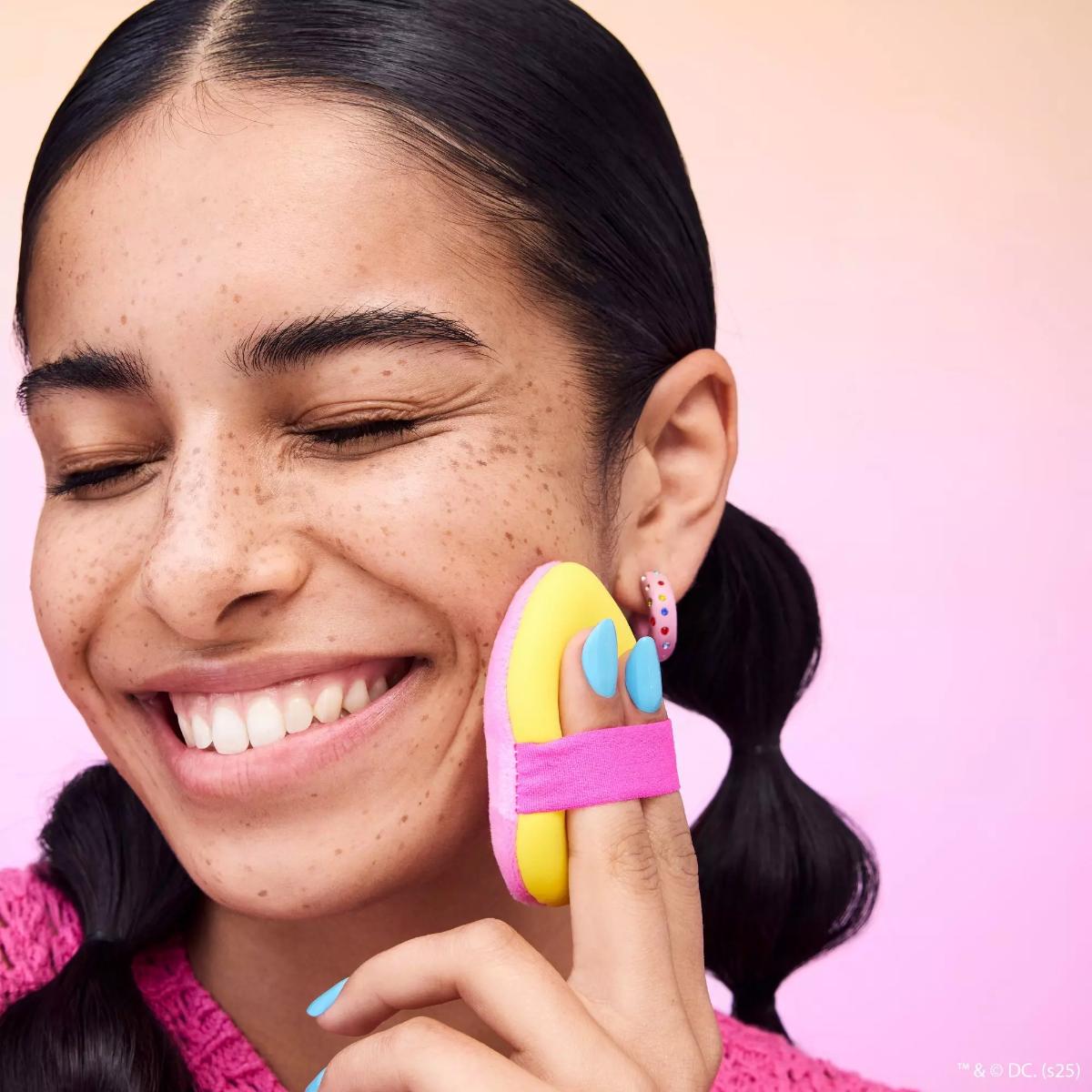Superman-themed double-sided powder puff for a flawless application