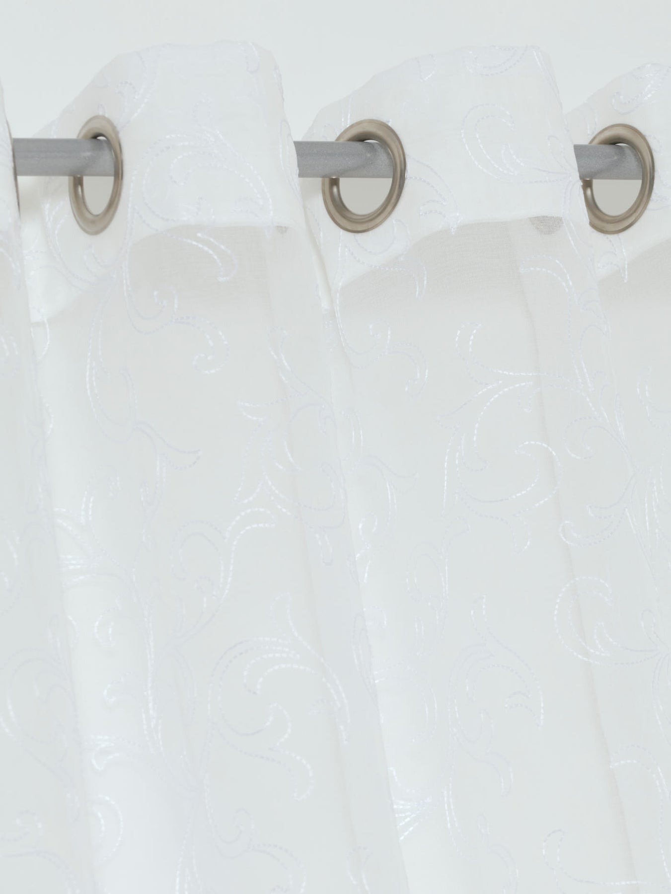 Upgrade your home decor with the Eyelet Standard Sheer Scroll Curtain. With its elegant eyelet design and sheer fabric, this curtain adds a touch of sophistication to any room. Its lightweight and airy material allows natural light to filter through, creating a warm and inviting ambiance. Elevate your living space with this timeless piece.