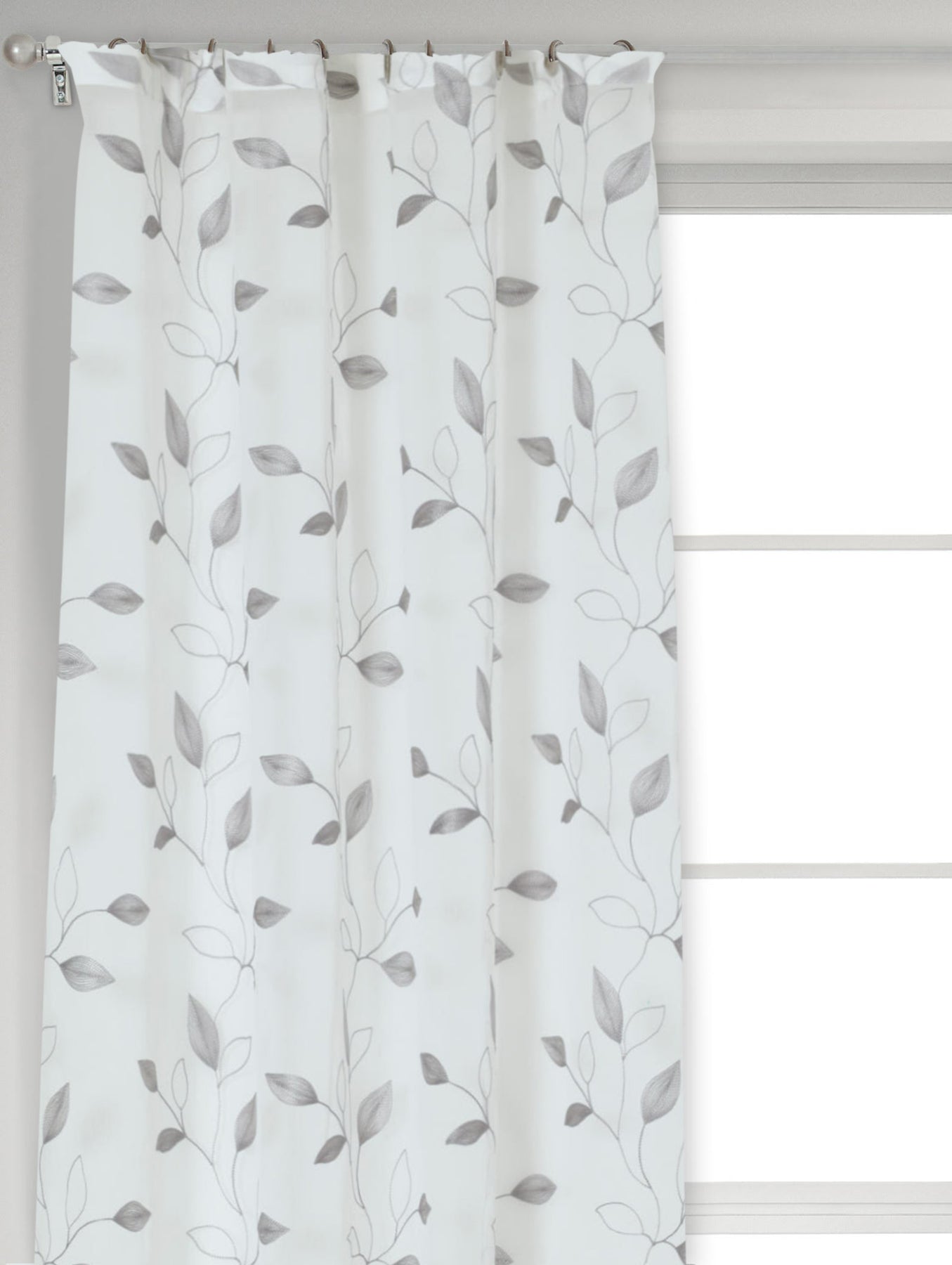 Eyelet Extra Width & Length Sheer Silhouette Leaf Curtain - White