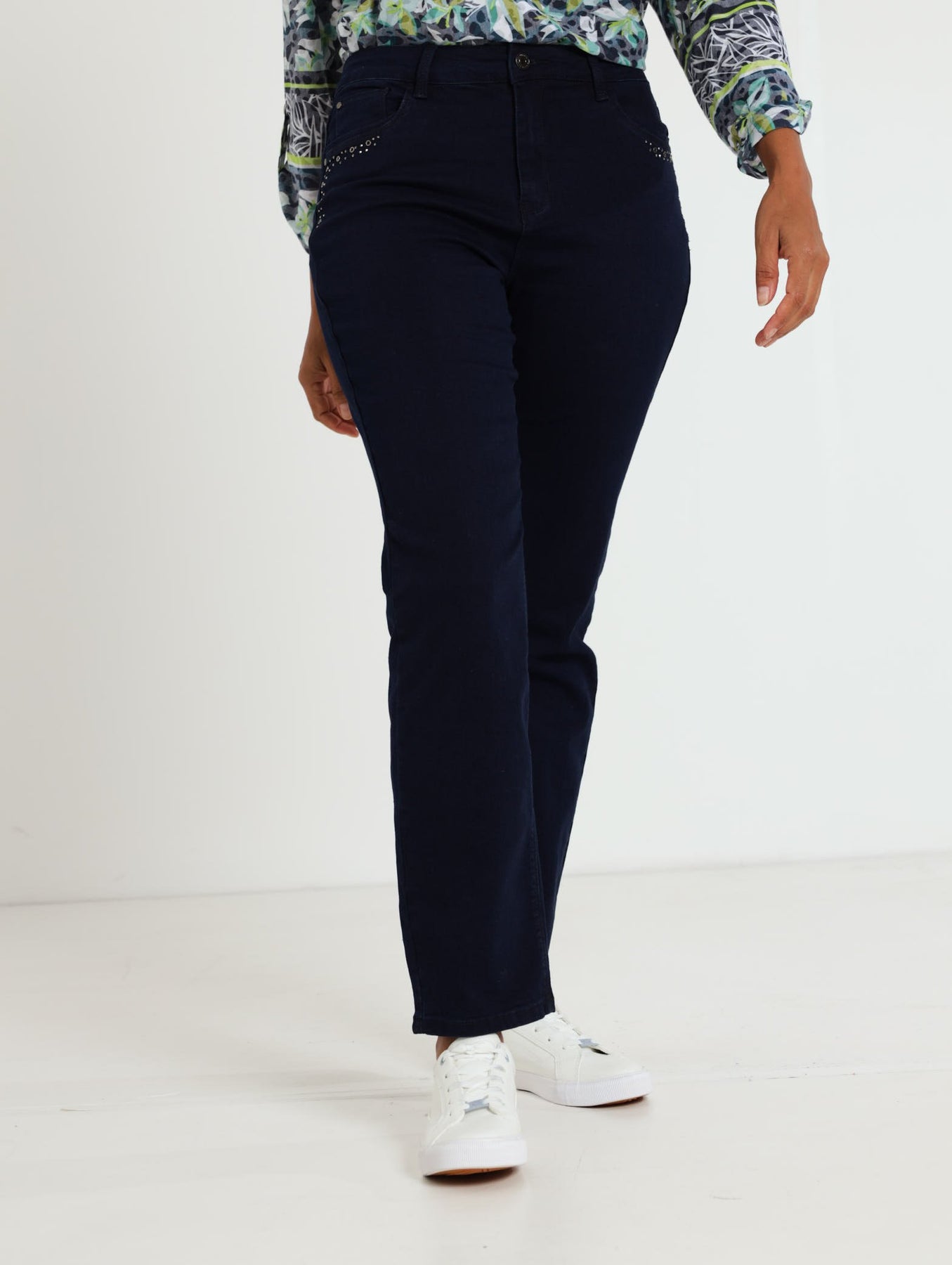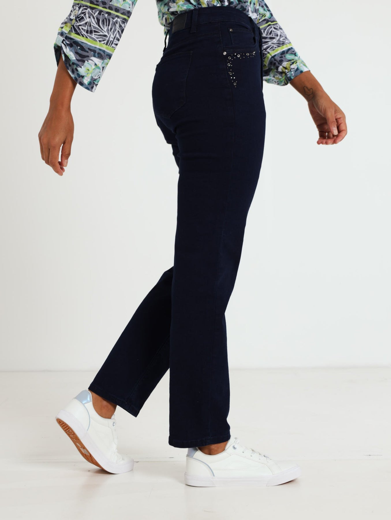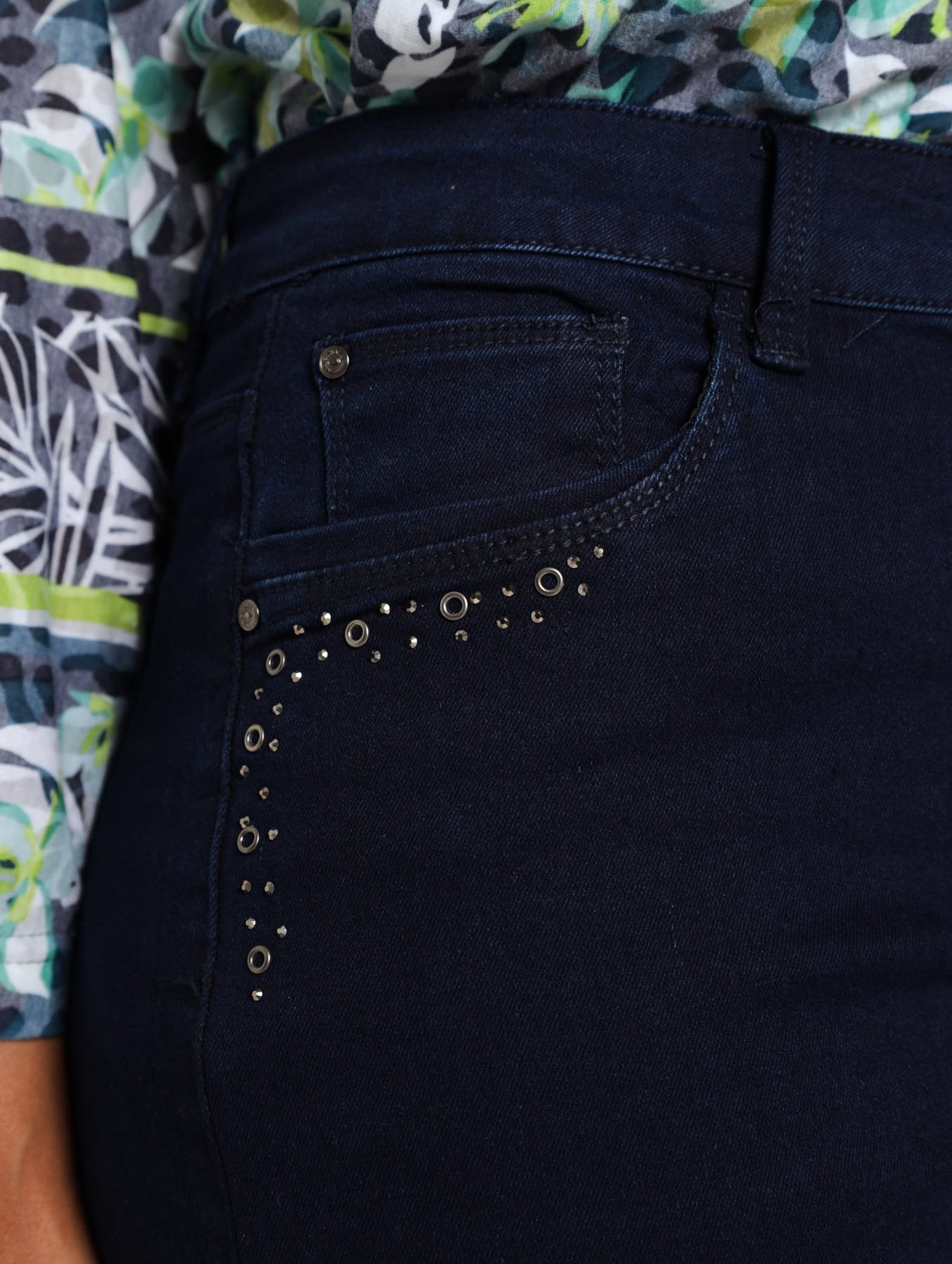 Eyelit Detail Strightleg Denim Jean - Dark Wash Ink