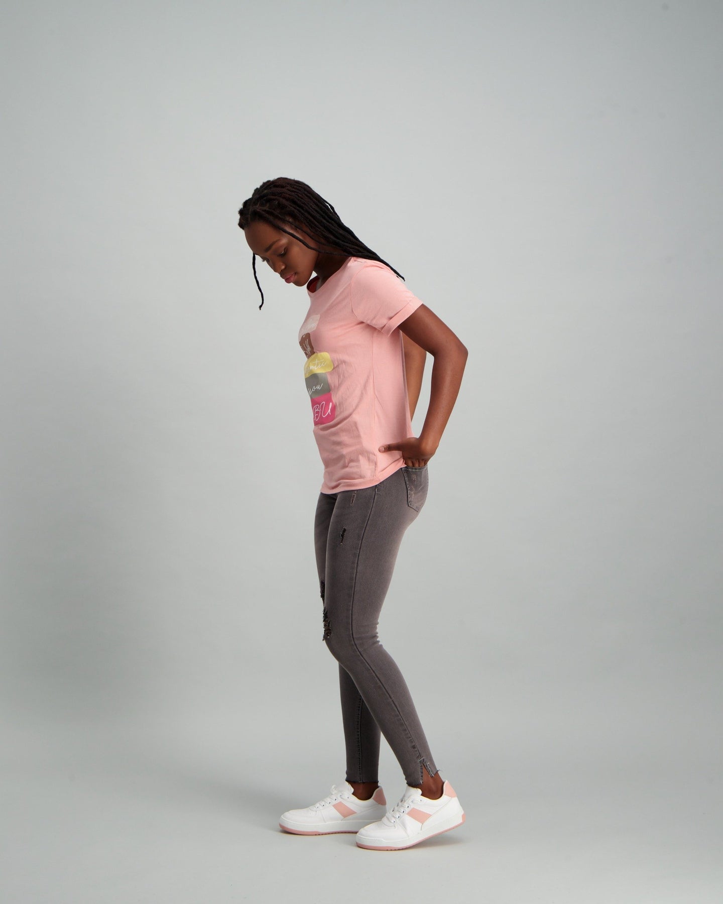 The perfect pretty statement top, you can never have too many. Pair this slogan tee with your go-to jeans.