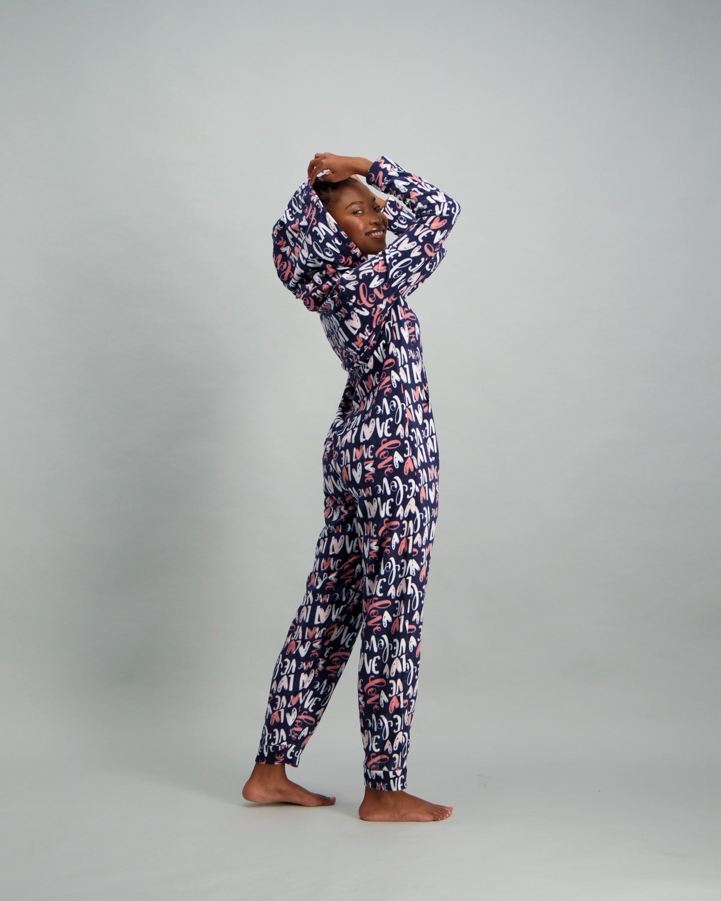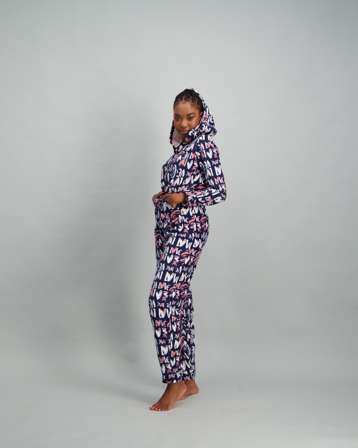 Your new winter companion, snuggle up in this fleece onesie. Featuring a solid colour hoodie ,front zip and pockets.