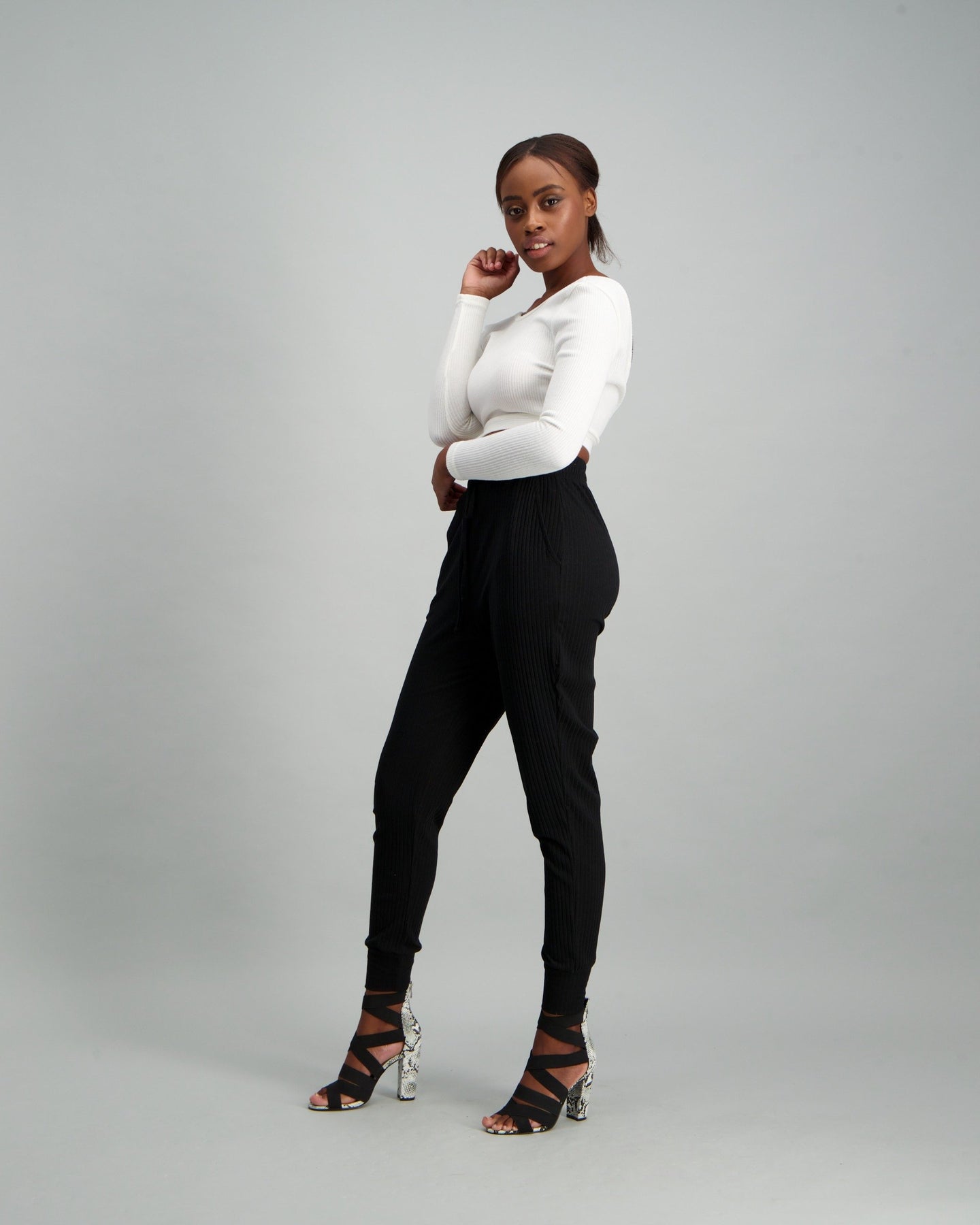 Step out in style and comfort with these drawstring pants with functional pockets. Pair with a fitted crop top and statement heels for a dressed up look.