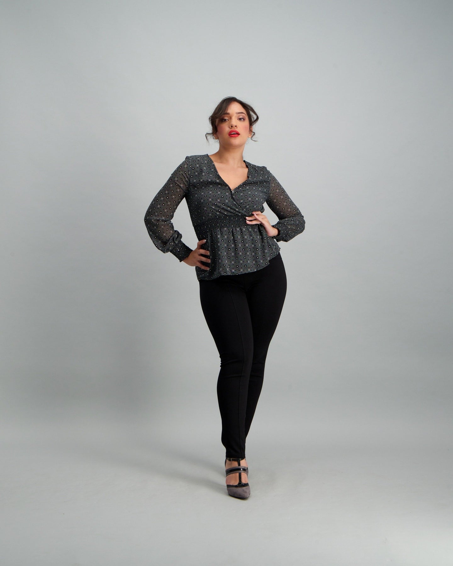 Feeling super stylish in this Heart Print Wrap Blouse. Pair this blouse with a pair of formal black pants and black heels for a sophisticated look.