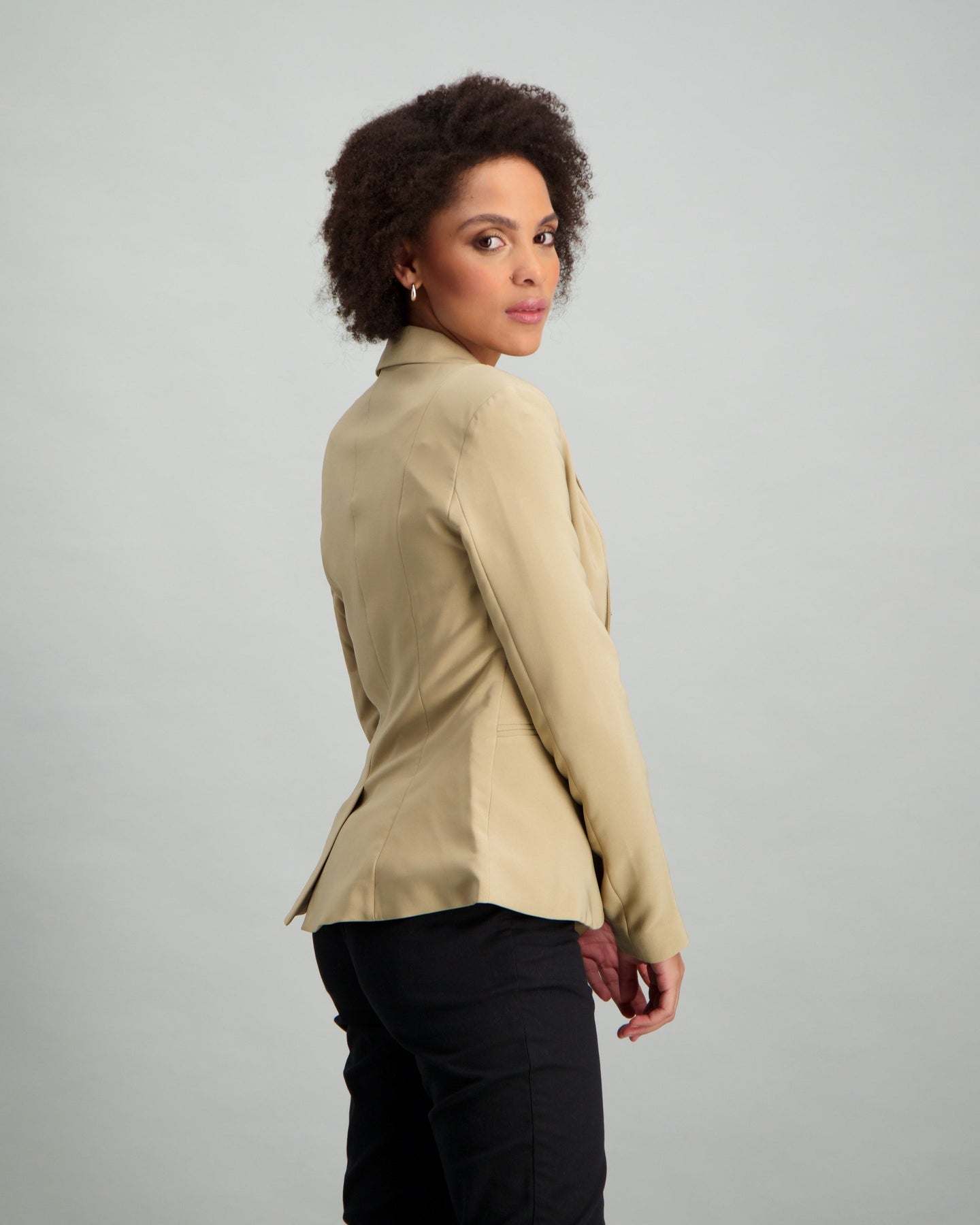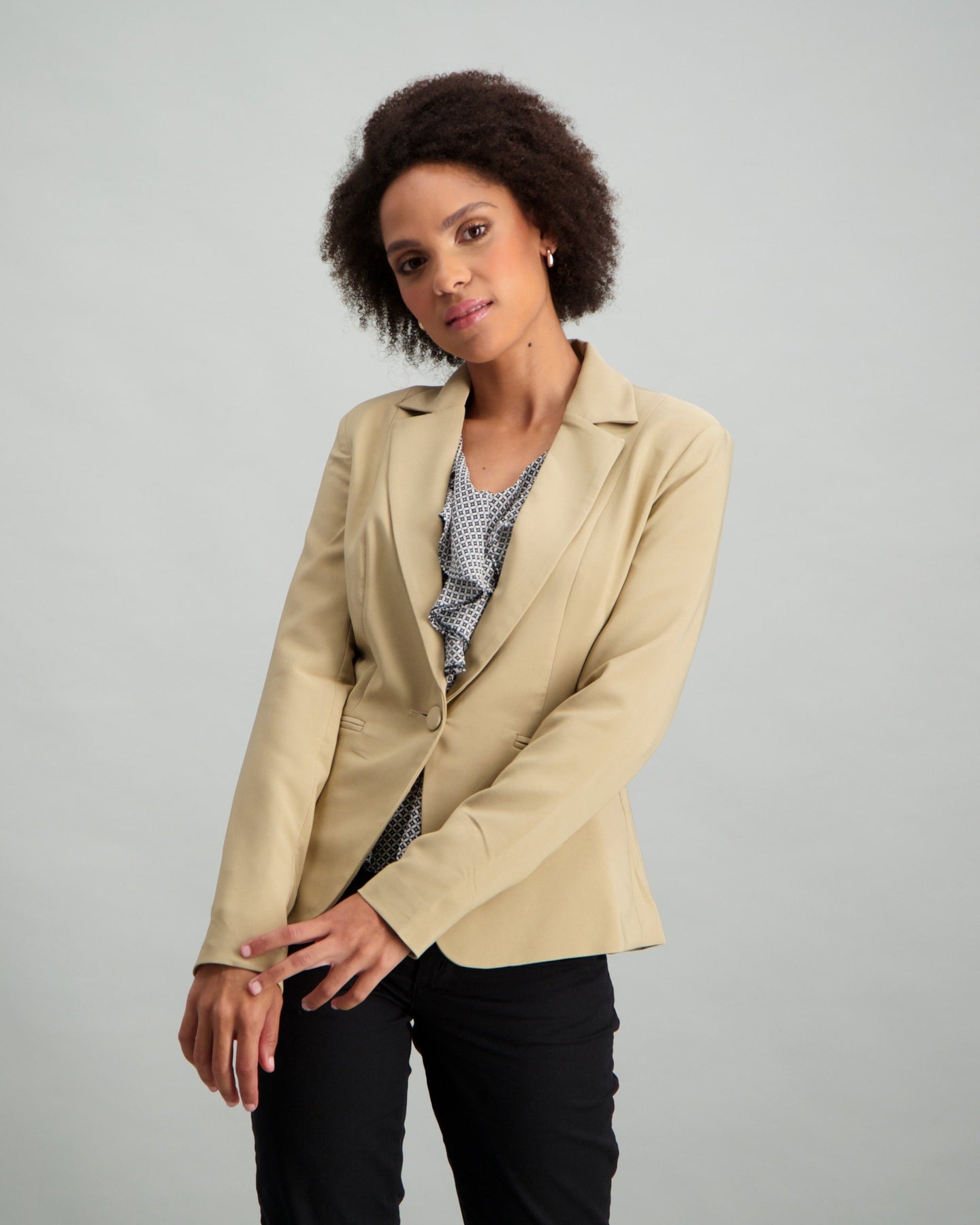 A timeless classic piece for every working lady. This notch lapel collar blazer features a front button and slim fit. Take any look from casual to sophisticated with this blazer.