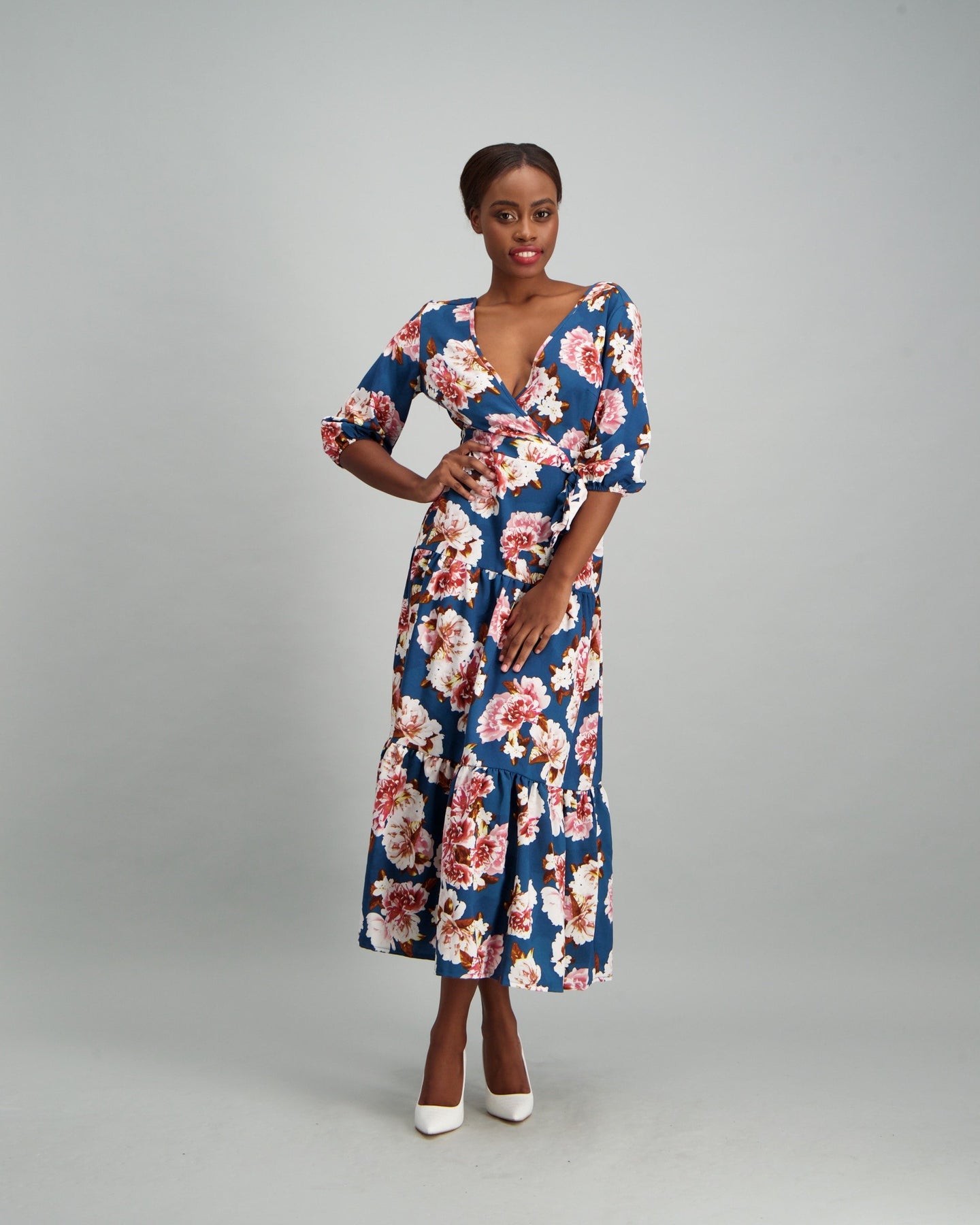 This long sleeve floral dress is a summer must have, it features an open back design and Tiered detail. Pair with white ankle heeled boots for a feminine and edgy take.