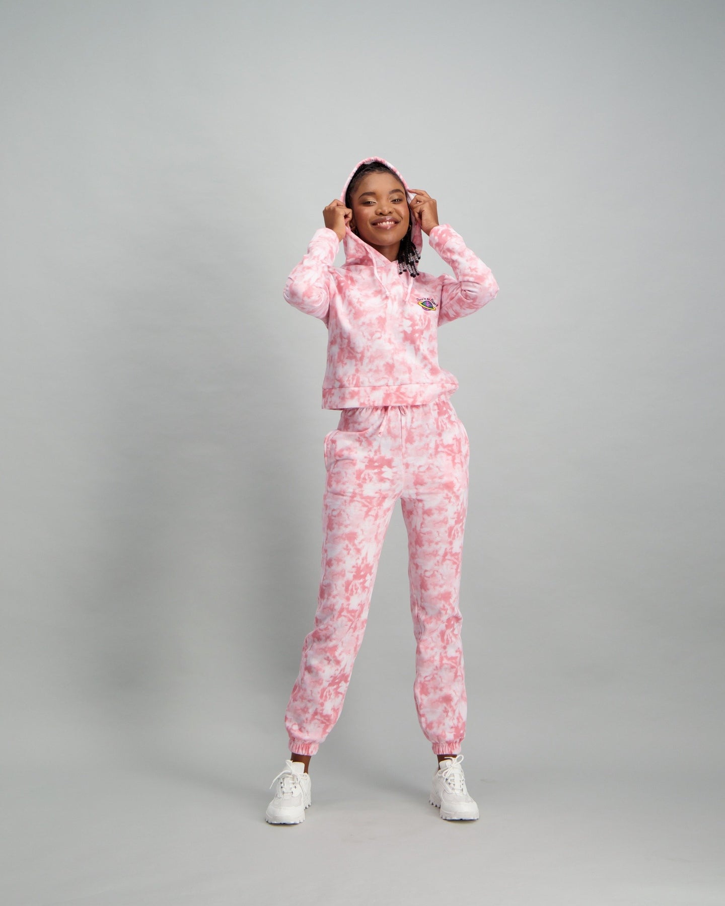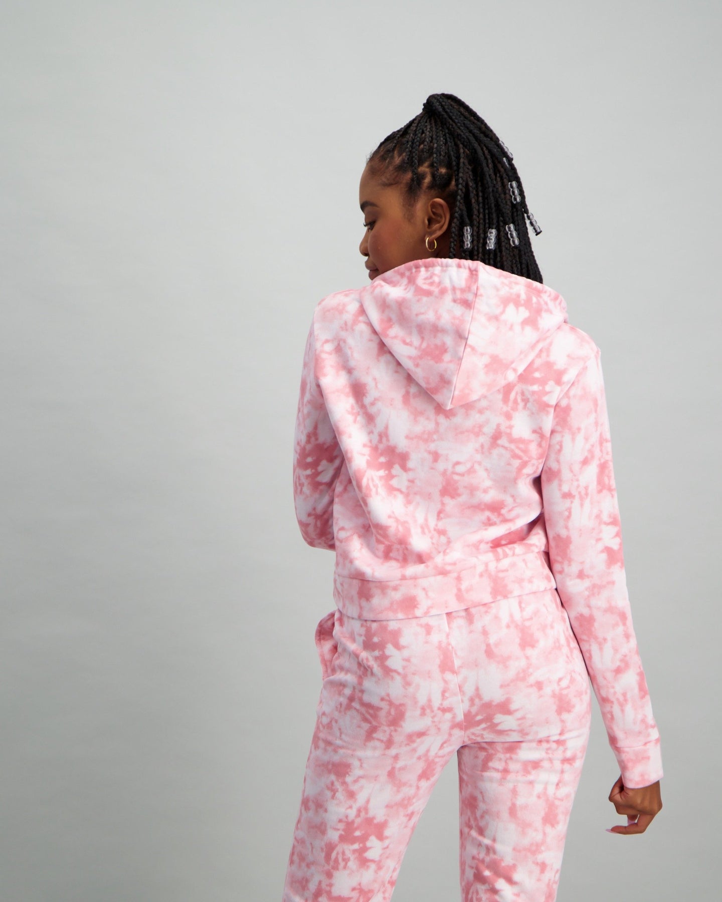 Trend alert! This tie dye hoodie is a season must have. This cropped hoodie features an embroidered print on the front and a thick bottom hem. Team with the matching tie dye joggers and fresh kicks for a comfy look we can't get enough of..