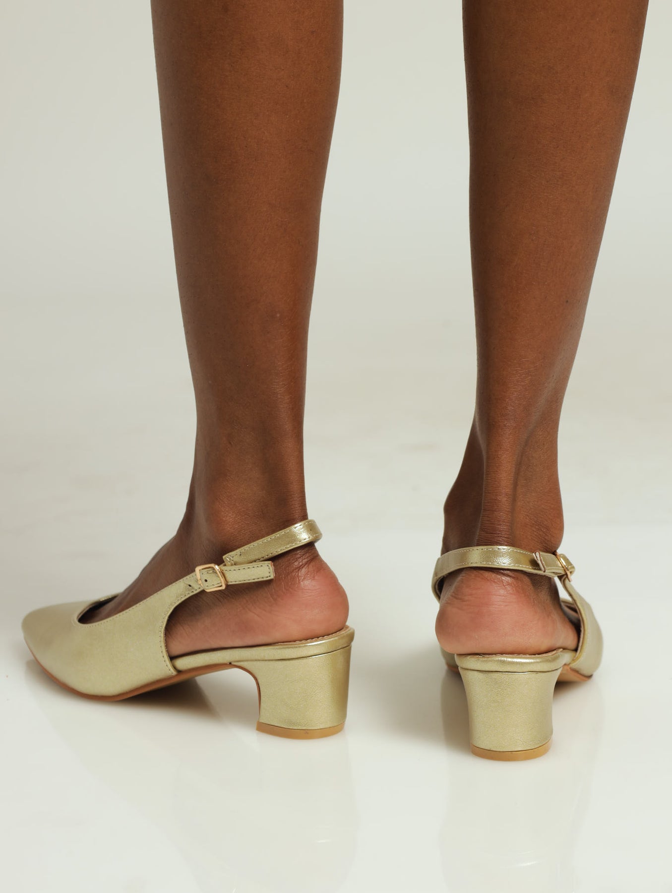Filipa Pointed Toe Kitten Sling Back Heel - Gold