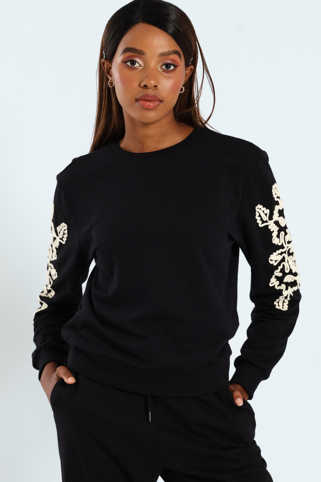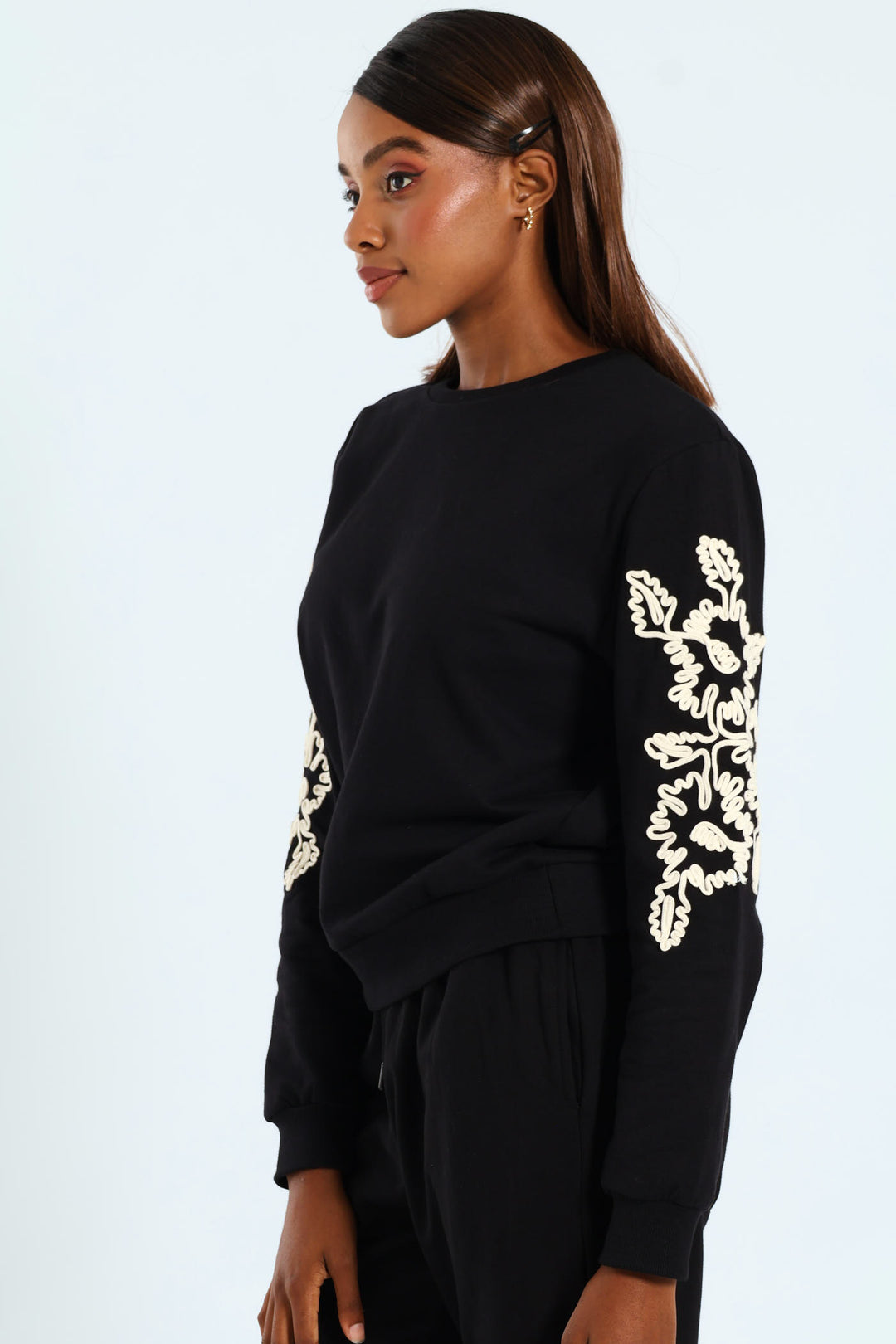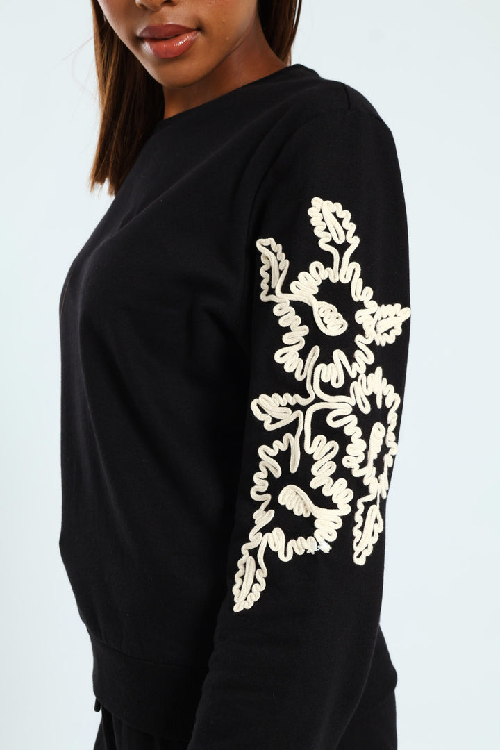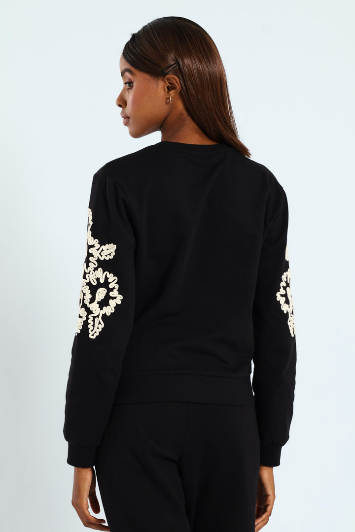 Floral Cornelli Long Sleeve Pullover - Black