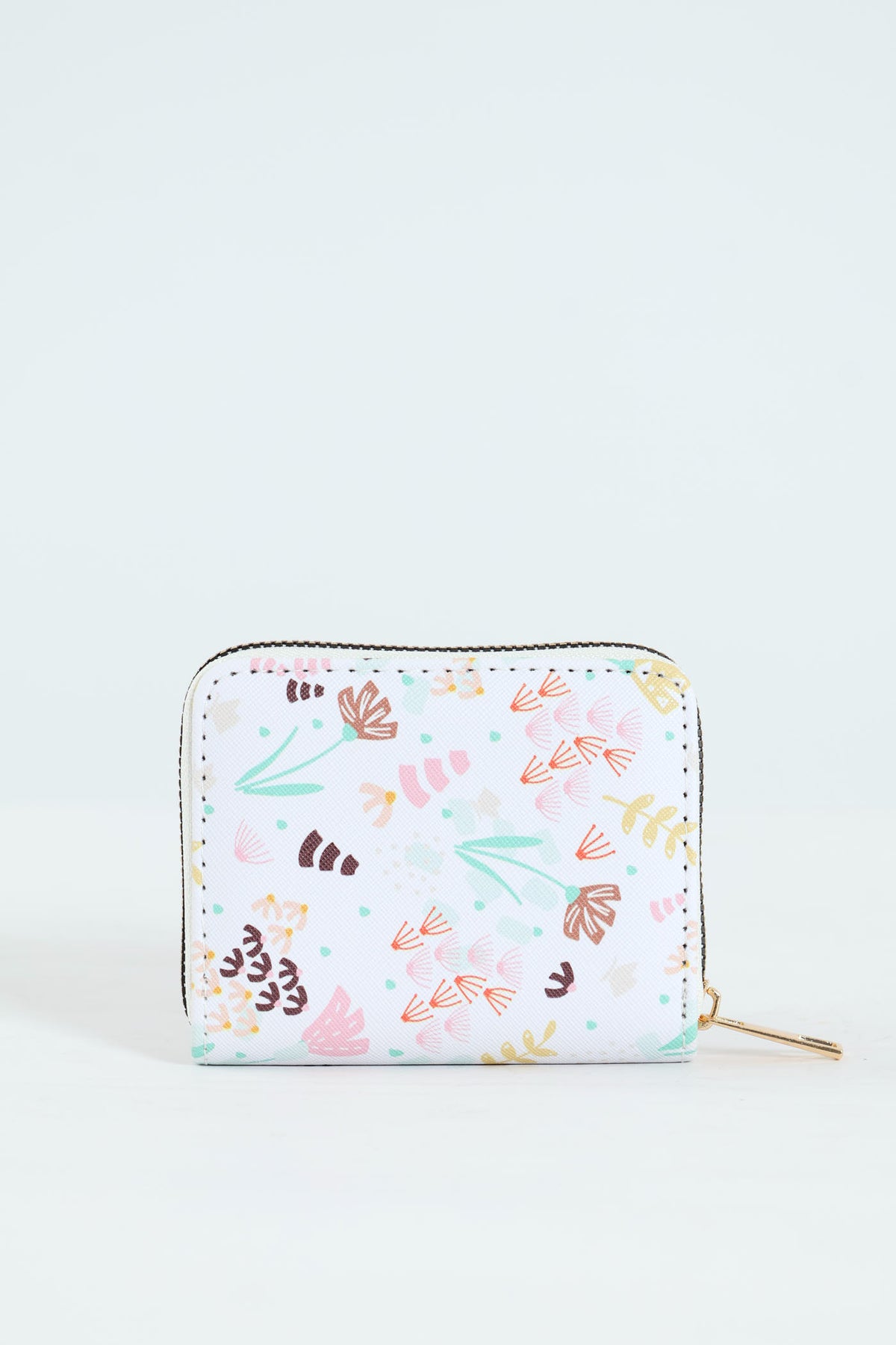 Floral Print Zip Around Purse - White