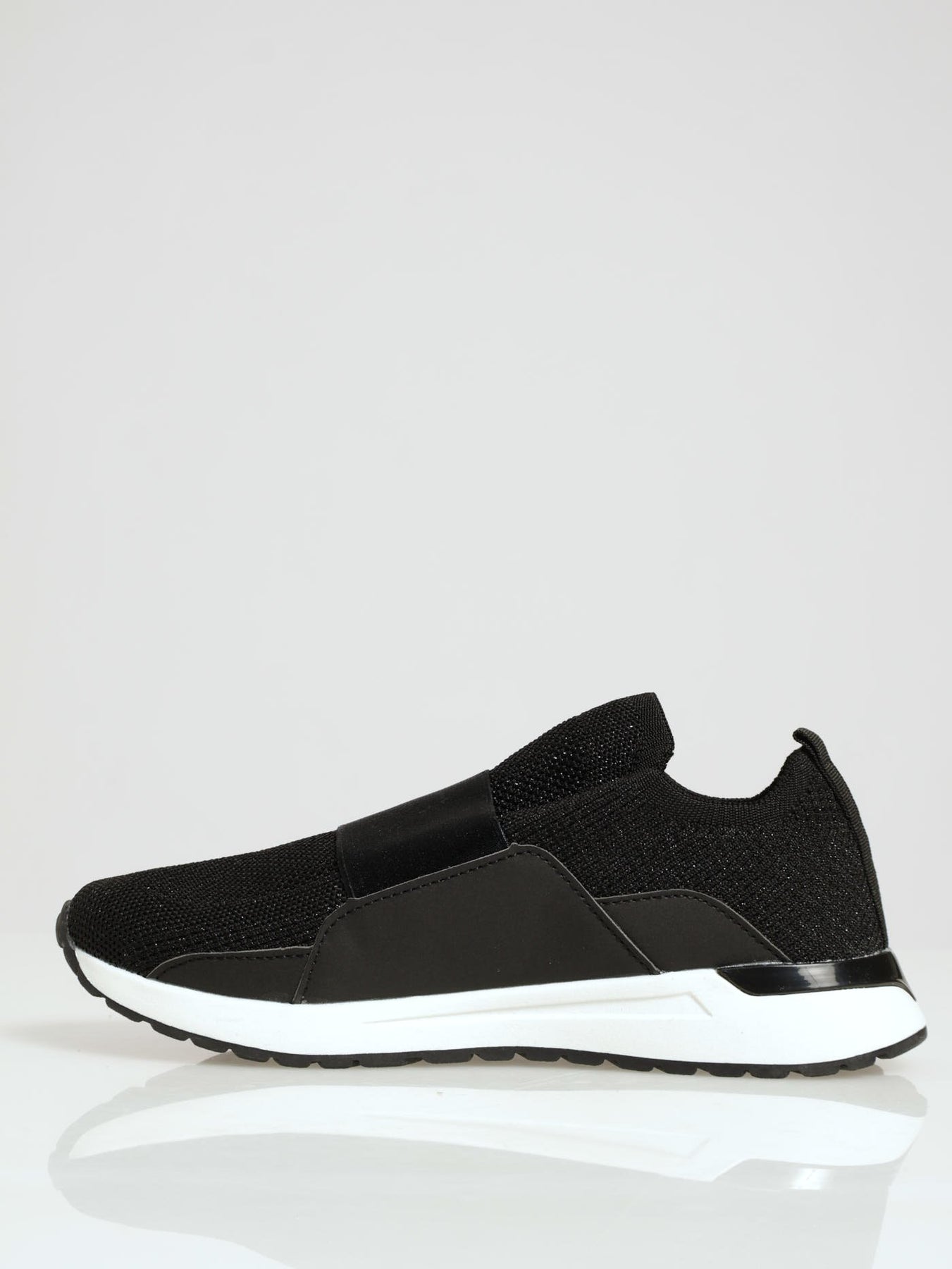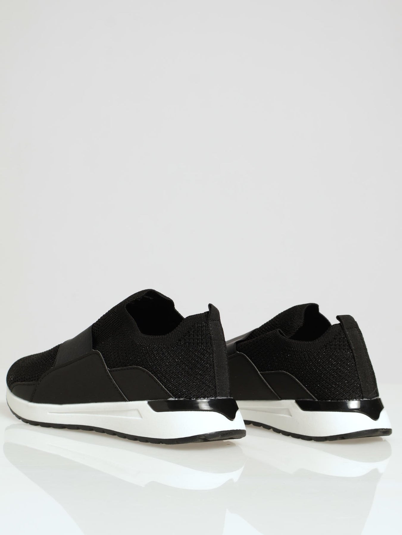 Flyknit Slip On With Wide Metallic Elastic Band Sneaker - Black