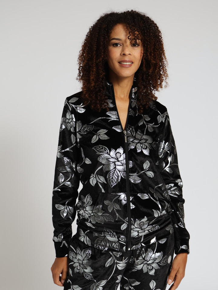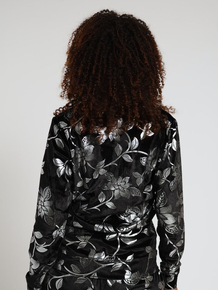 Foil Velvet Zip Through Top - Black