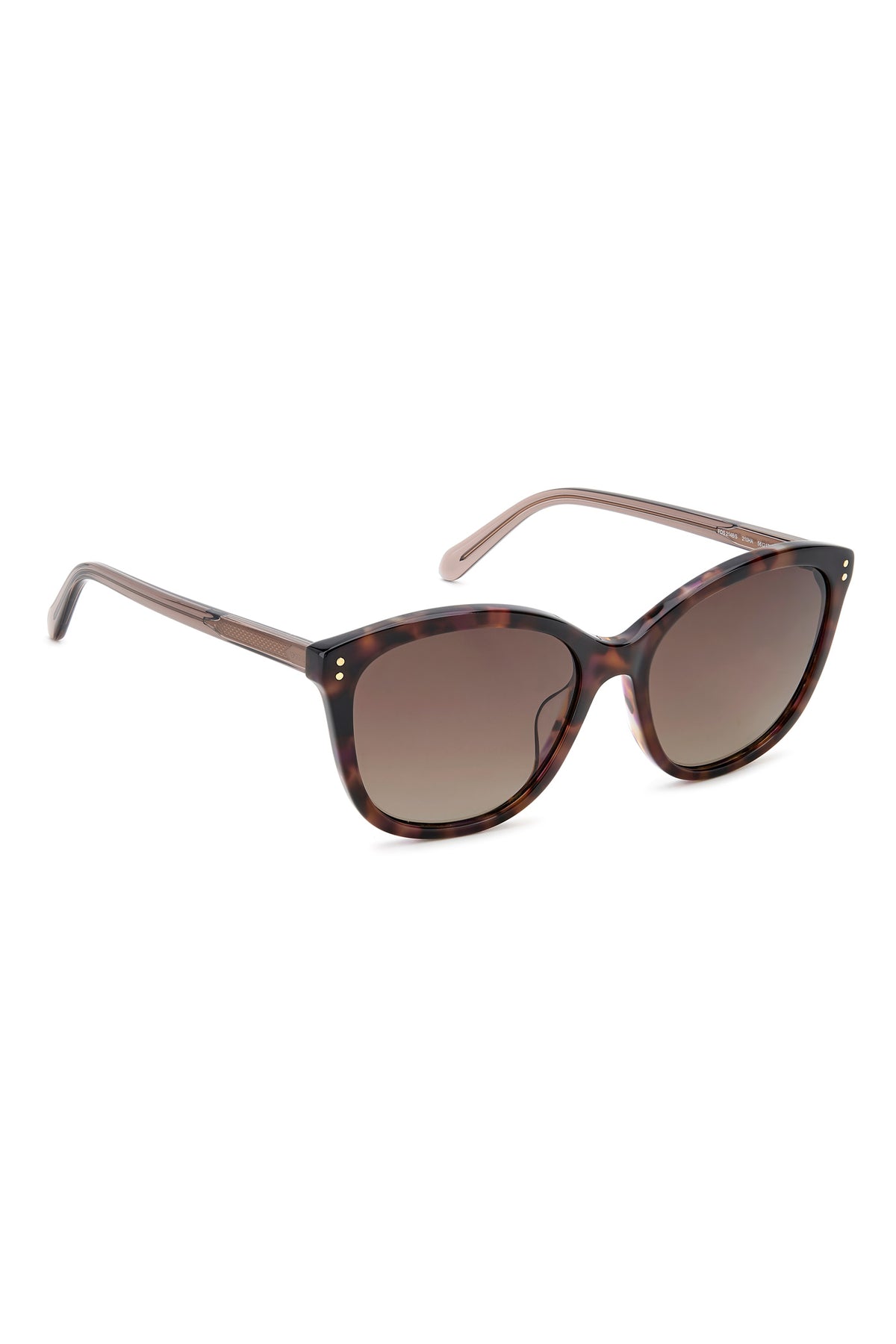 These FOSSIL women's sunglasses are a timeless choice. The feminine shape of the front is brightened by small round rivets. The acetate temples are transparent, letting the finely chiselled metal core show through.