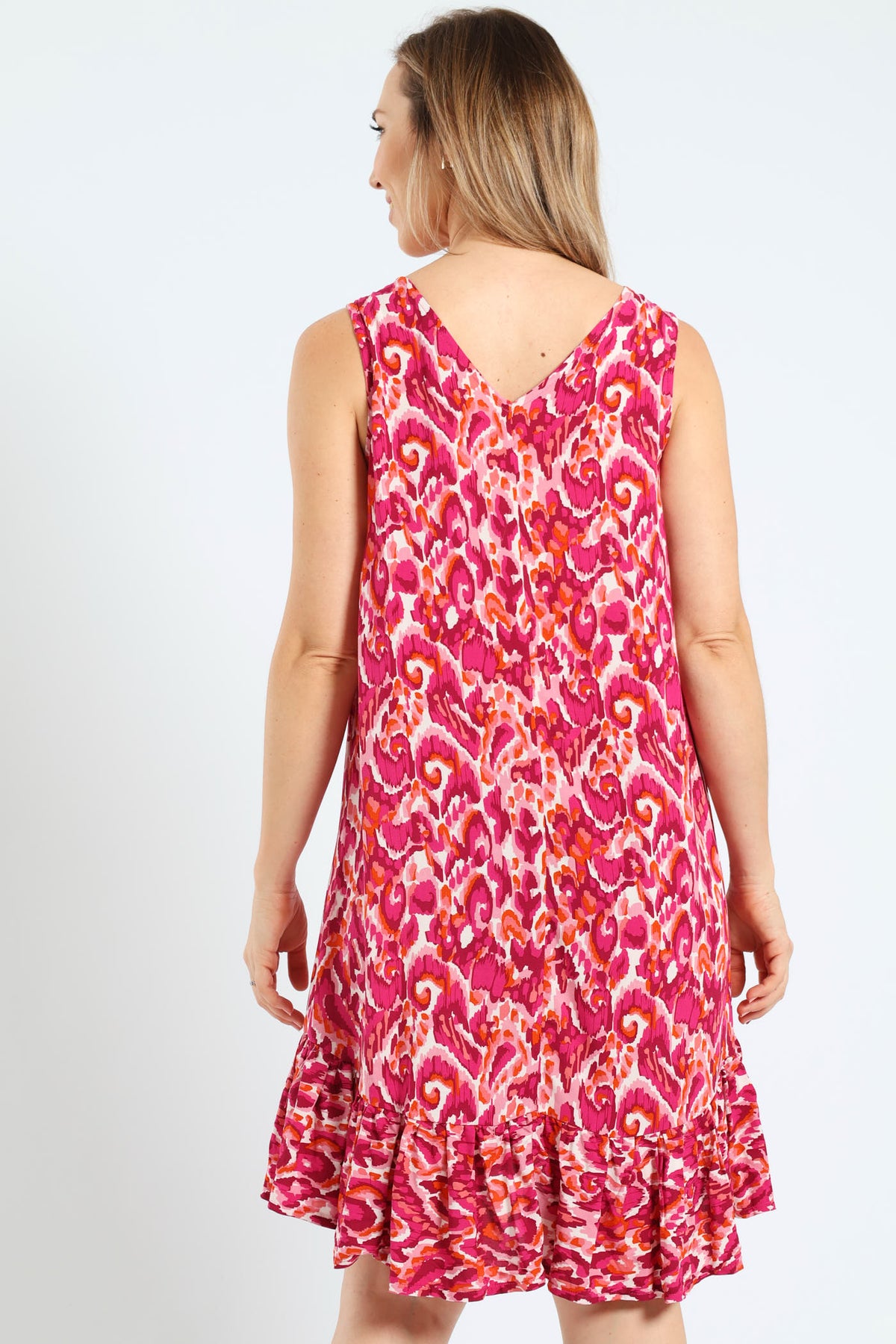 Frill Hem Hi-Lo Printed Shift Dress - Cerise