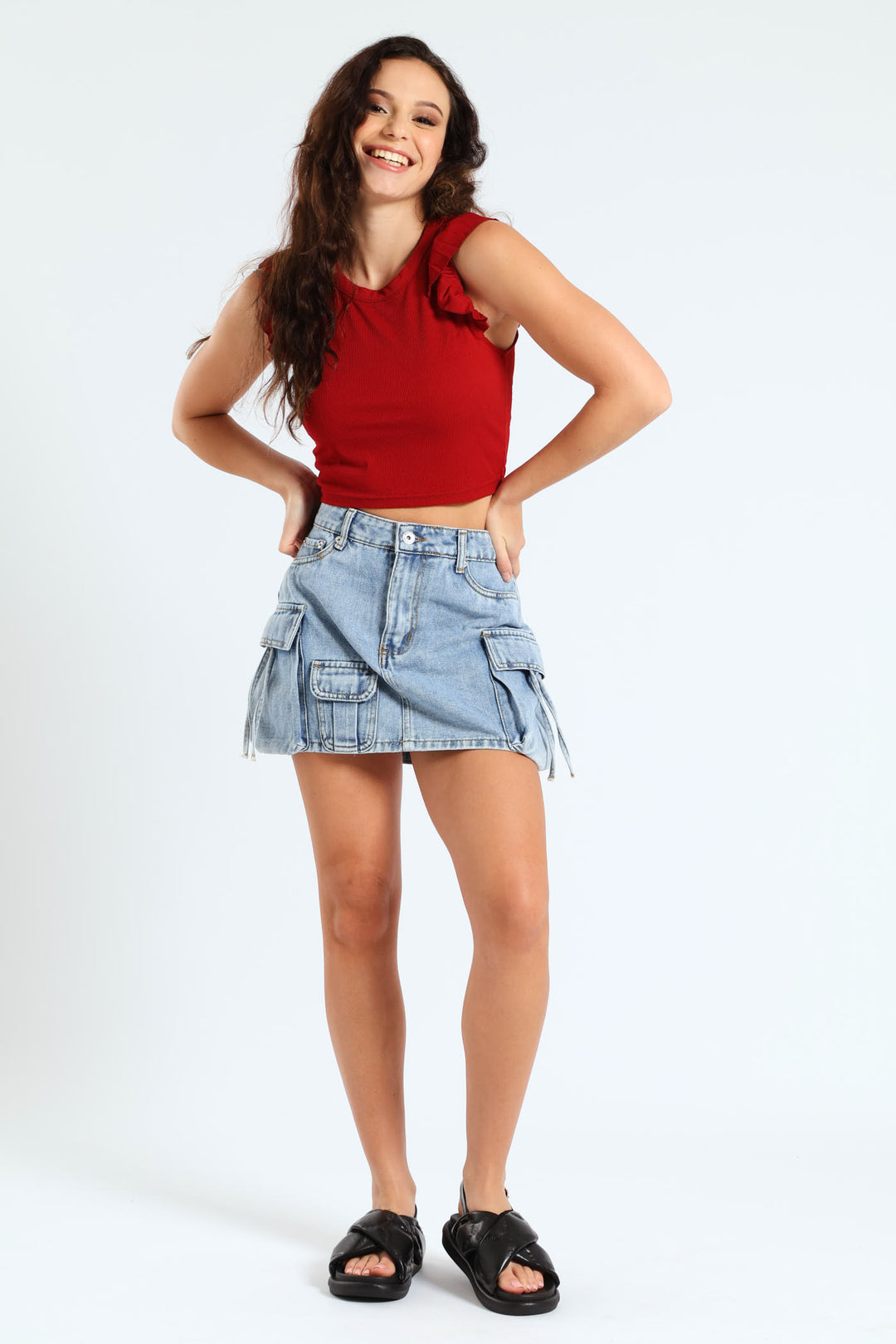 Indulge in a touch of cuteness and quirkiness with our Frill Sleeve Tank in Red! The frill sleeves add a playful twist to this classic tank top, making it a must-have for any fashion-forward wardrobe. Create a unique and fun look with this top that will surely turn heads.