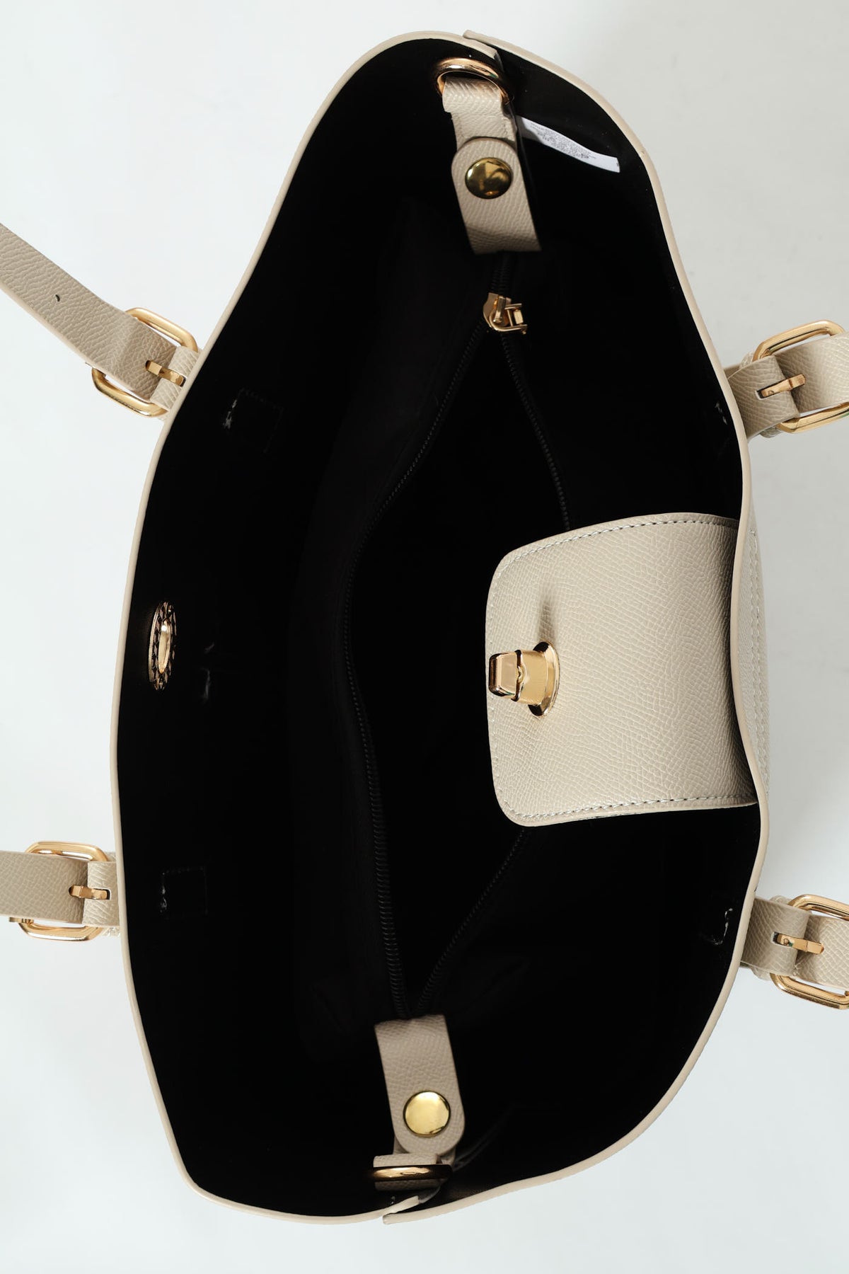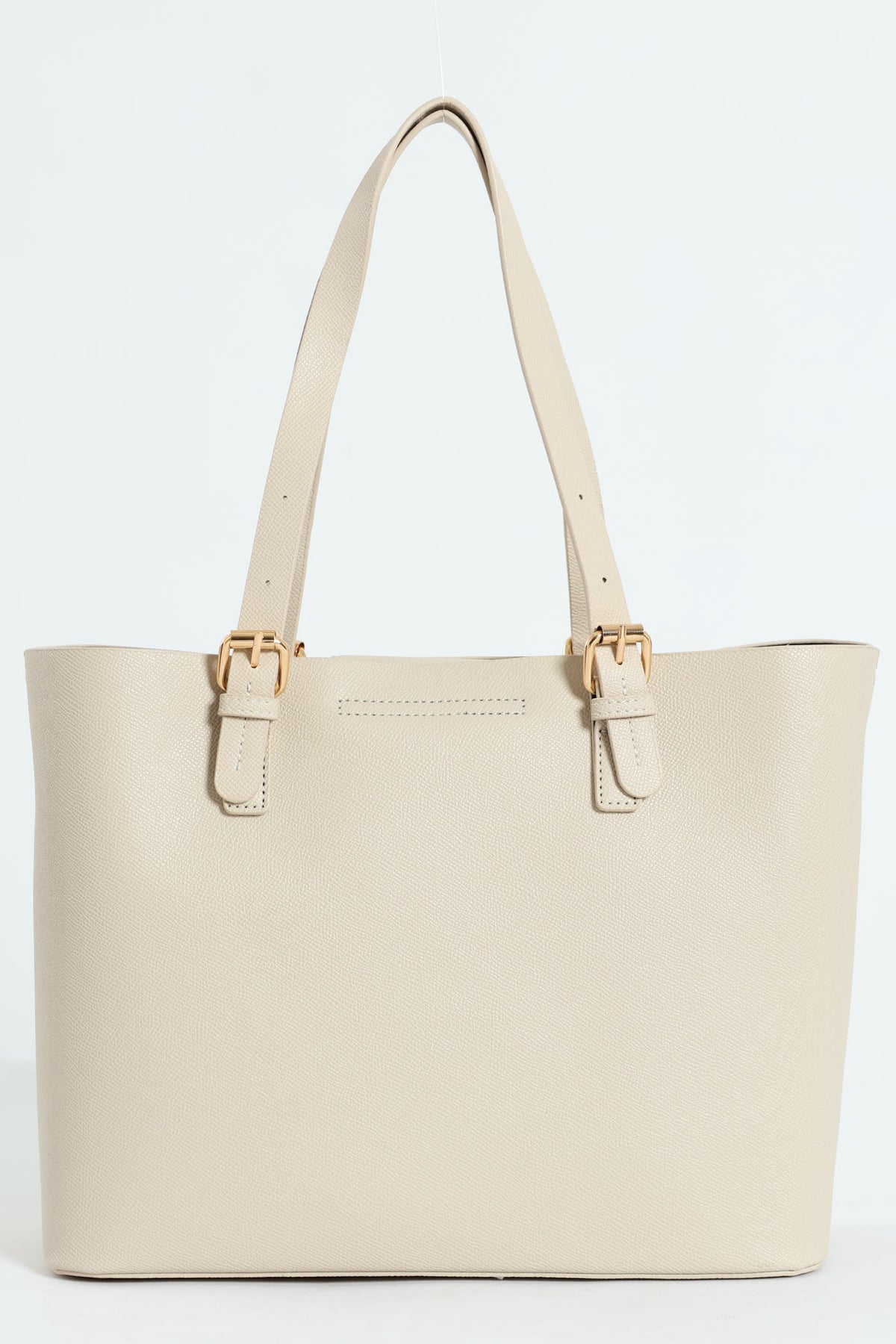 Effortlessly carry your essentials in style with our Front Pocket Detail Tote Bag in classic stone. The front pocket detail adds a touch of elegance while keeping your belongings secure. Perfect for both work and play, this versatile bag is a must-have for any fashion-forward individual.