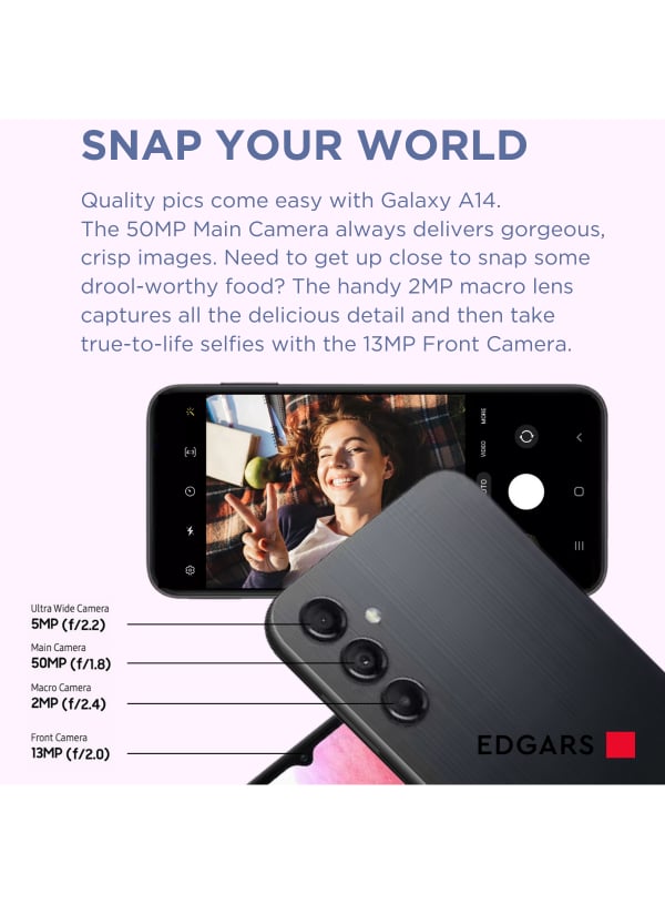 • Camera: Rear; 50MP + 5MP + 2MP, Front; 13MP
