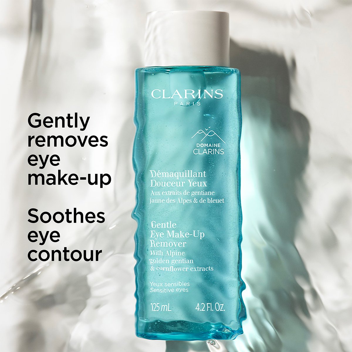 This make-up remover is rich in organic Alpine yellow gentian extract grown at the heart of the Domaine Clarins and organic cornflower extract to soothe the skin around the eyes. Ideal for the fragile skin around the eye area.