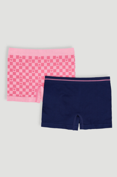 Girls 2 Pack Seamless Check Boyleg Panties - Navy