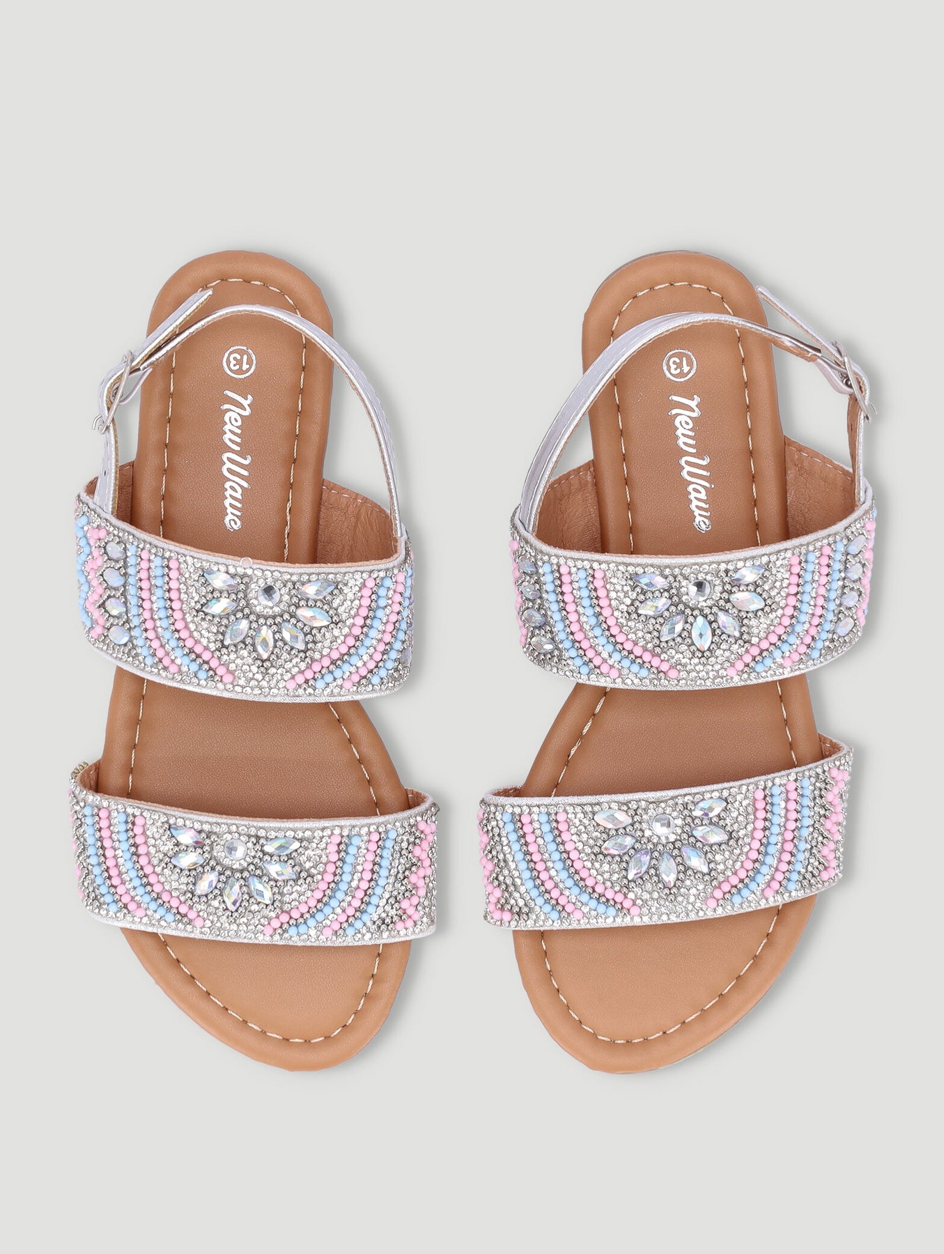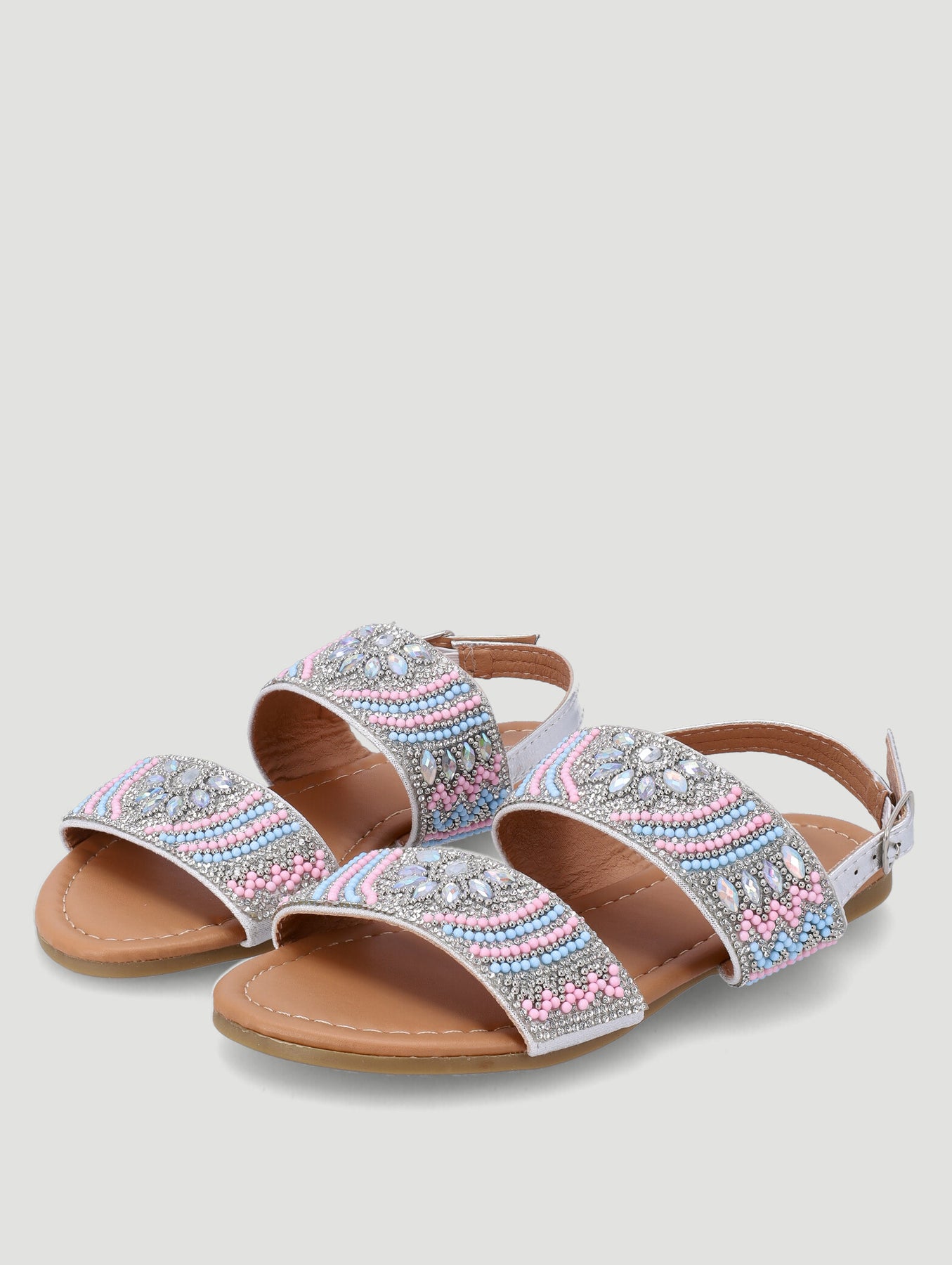 Girls Beaded Sandal - Silver