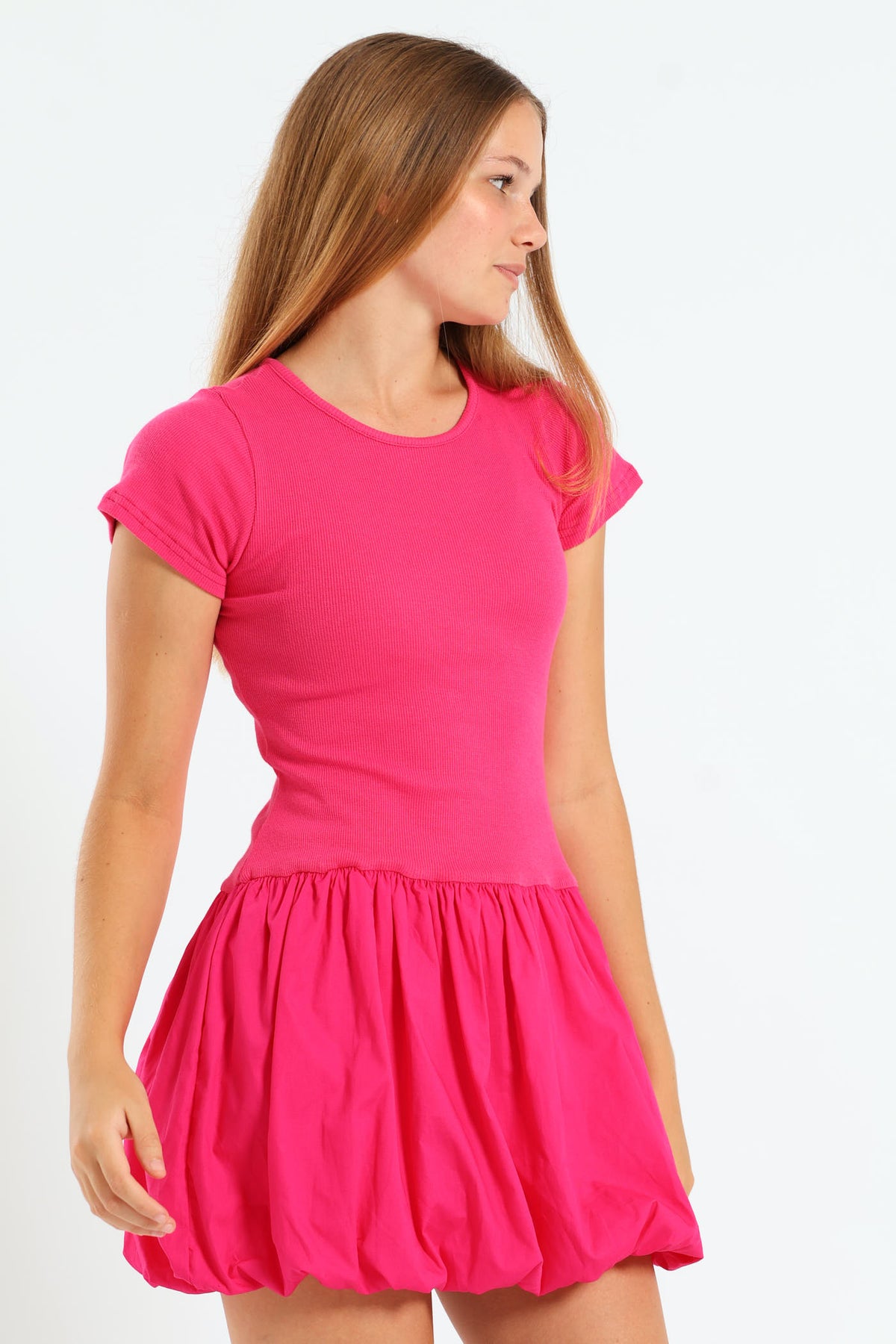 Girls Bubble Rib Dress - Cerise