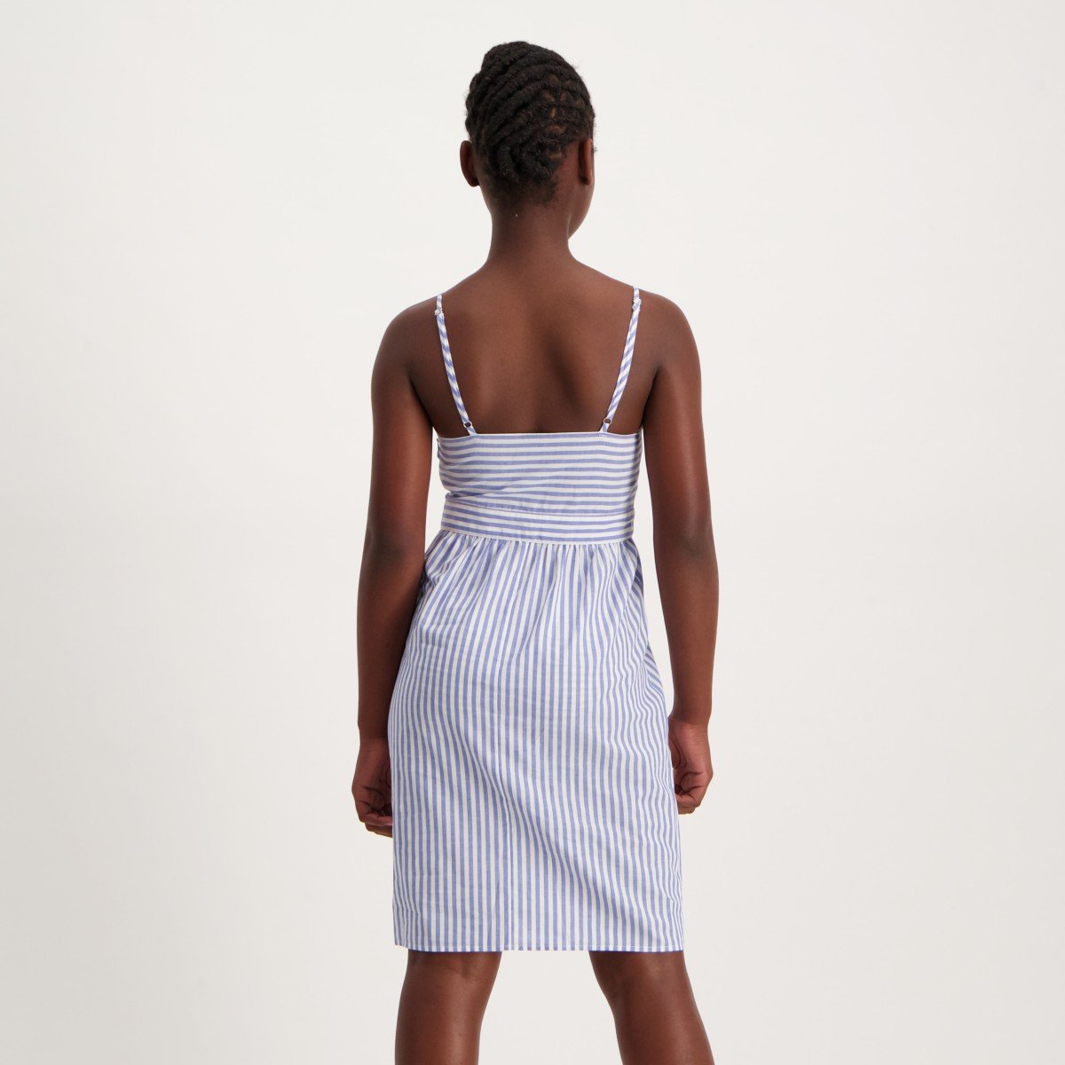 Girls Front Knot Striped Cotton Dress - Blue