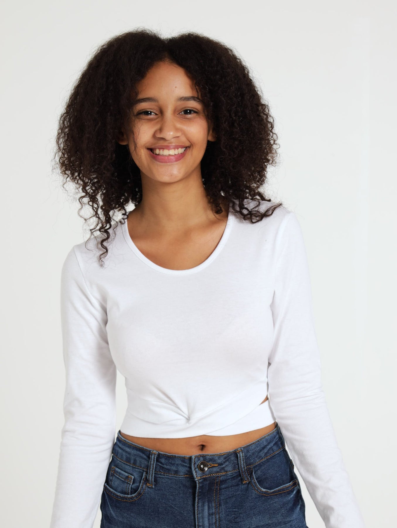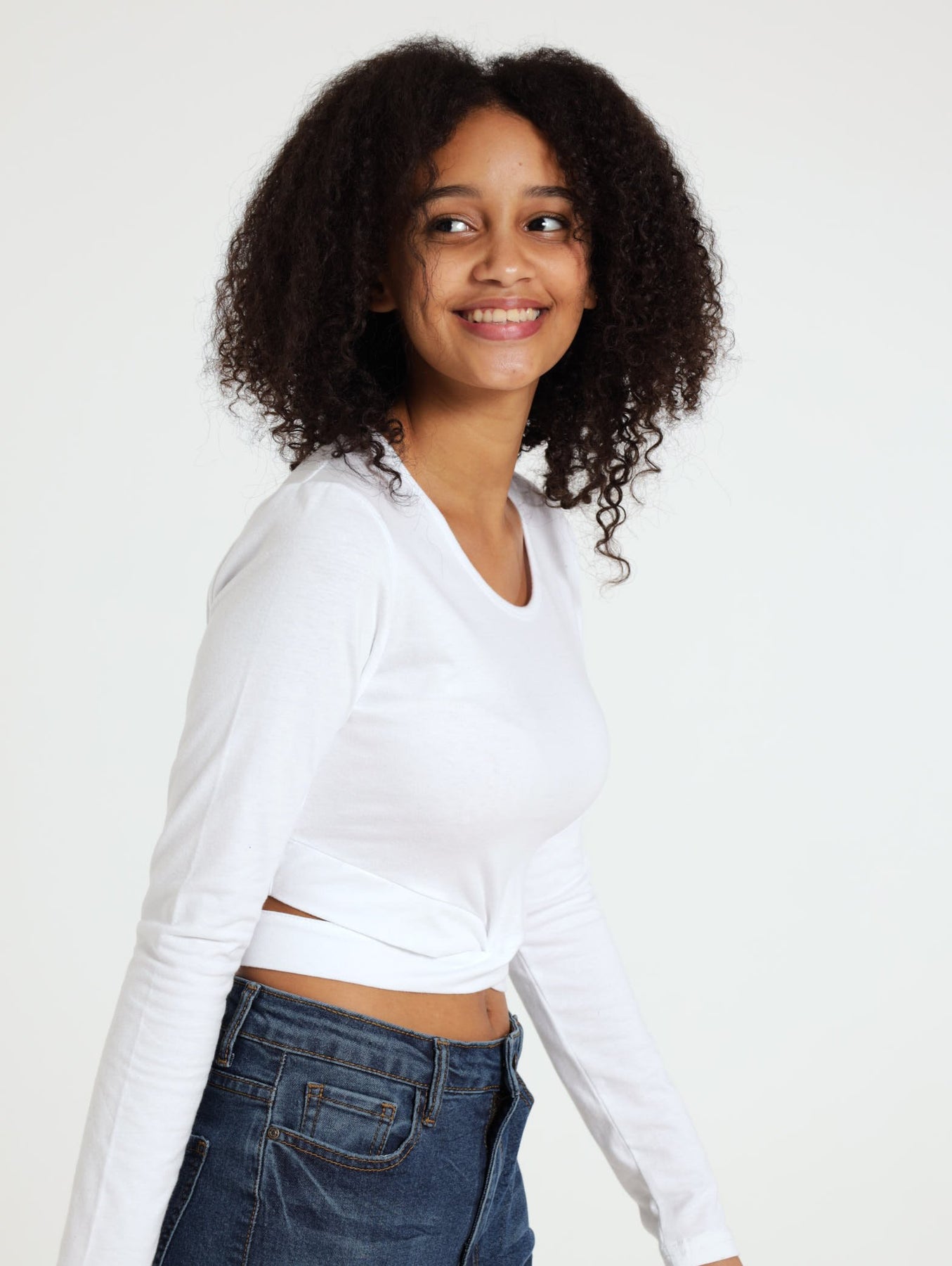 Girls Long Sleeve Crossover Top - White