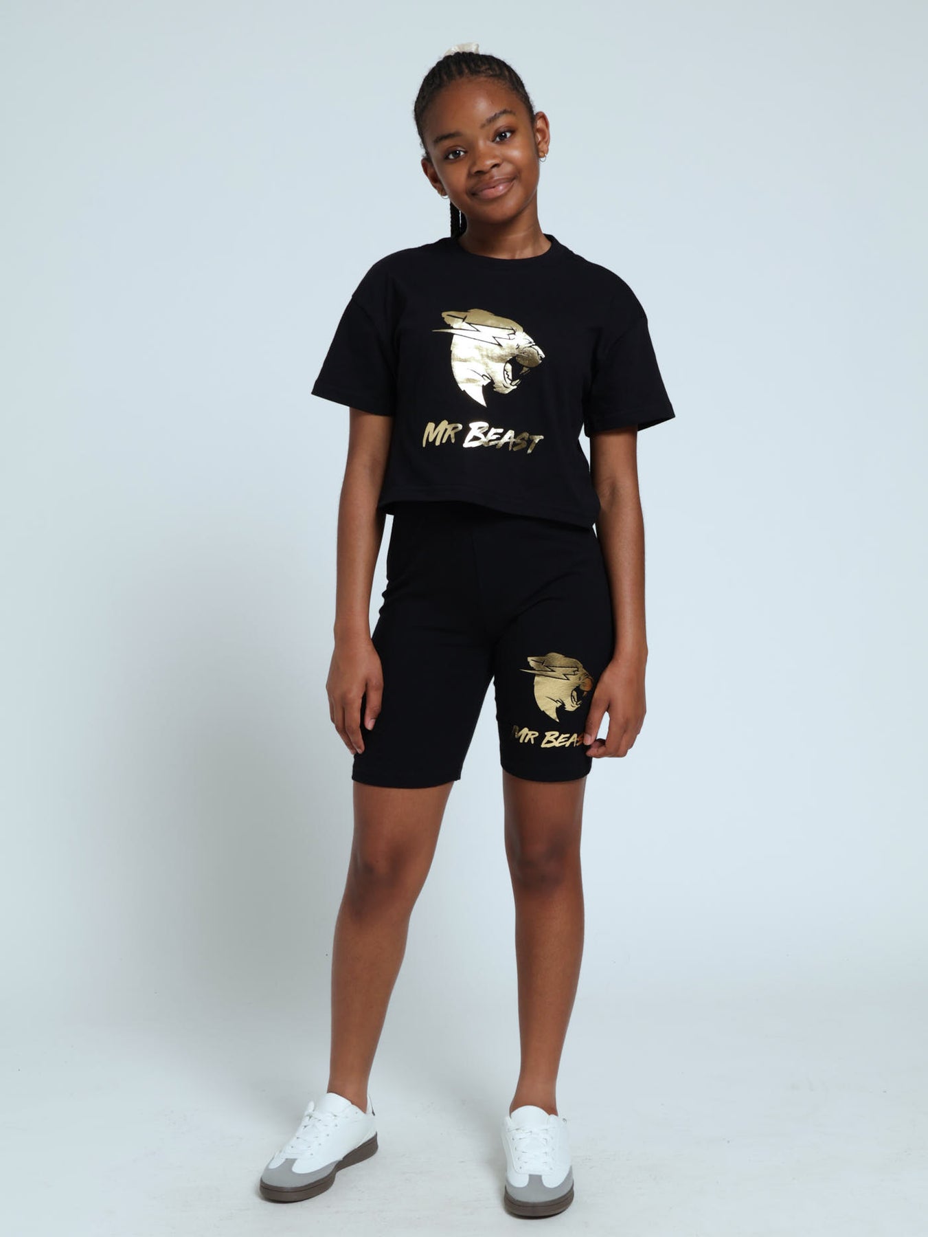 Girls Mr Beast Gold Boxy Tee - Black