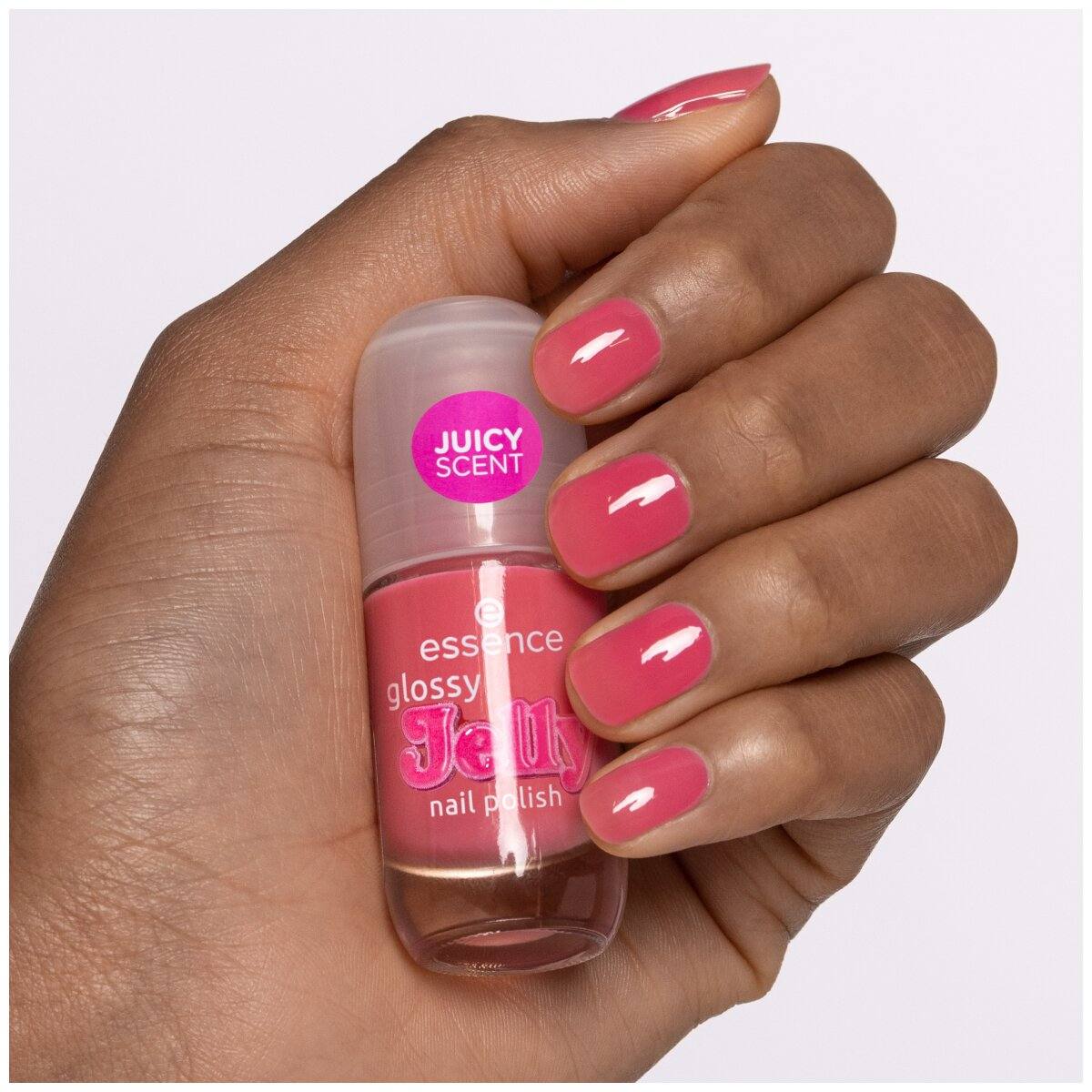 WOW effect for your nails: The essence glossy Jelly nail polish 01 Summer Splash in magenta-lilac not only provides a high-glossy and semi-transparent finish, but also provides a special experience for the senses: After drying, this nail polish smells deliciously fruity!