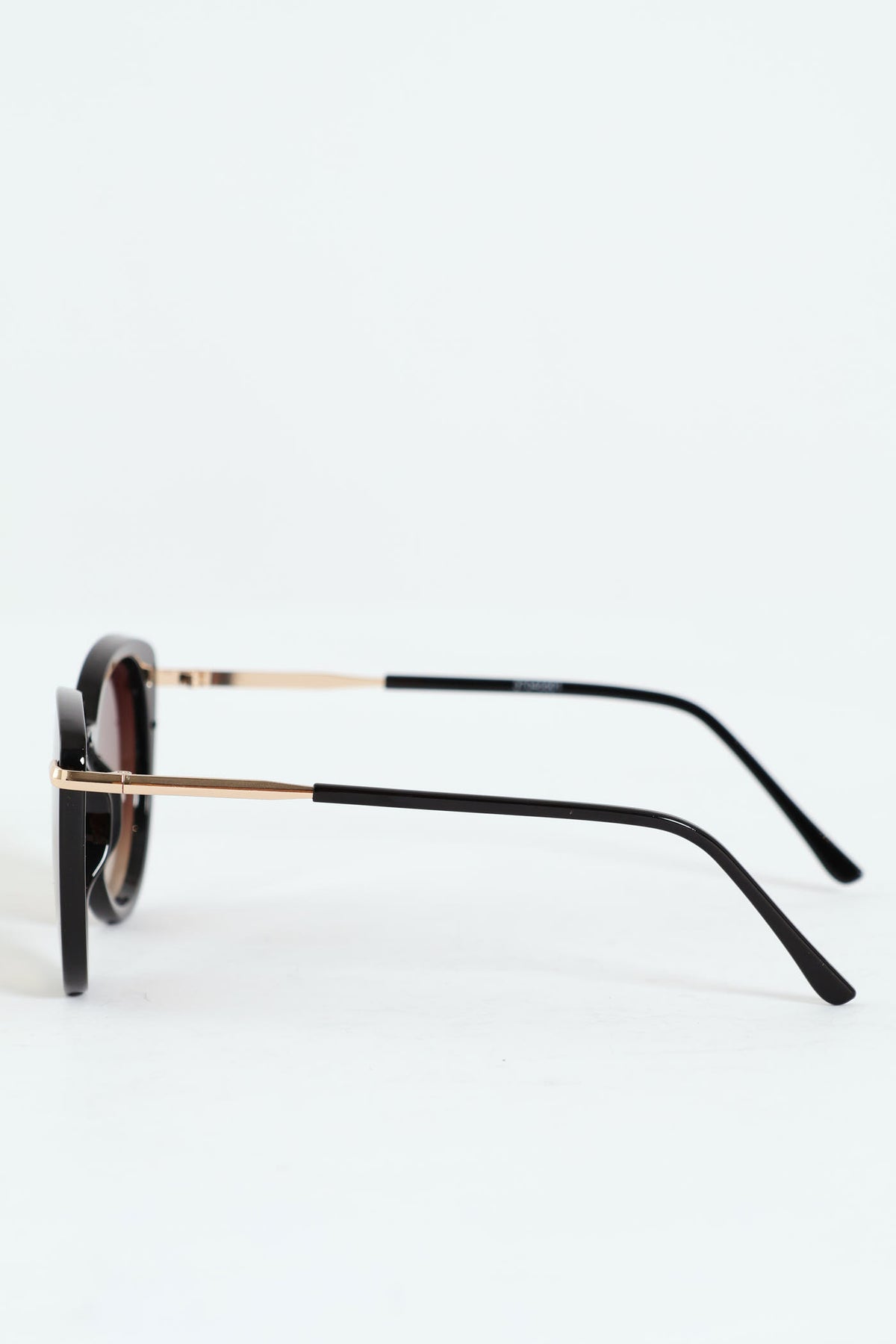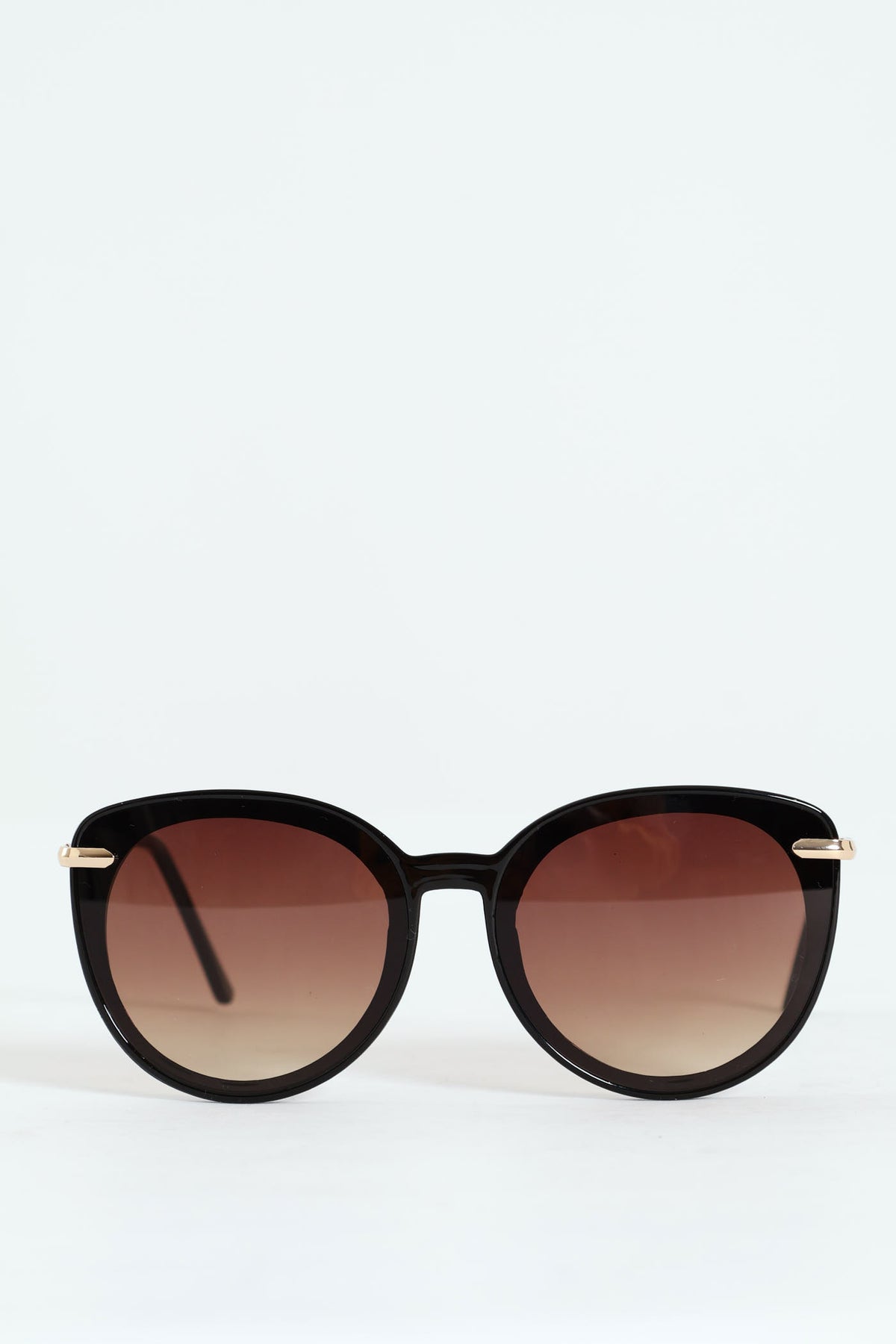 Gold Temple Rounded Cateye Gradient Lense Sunglasses - Black