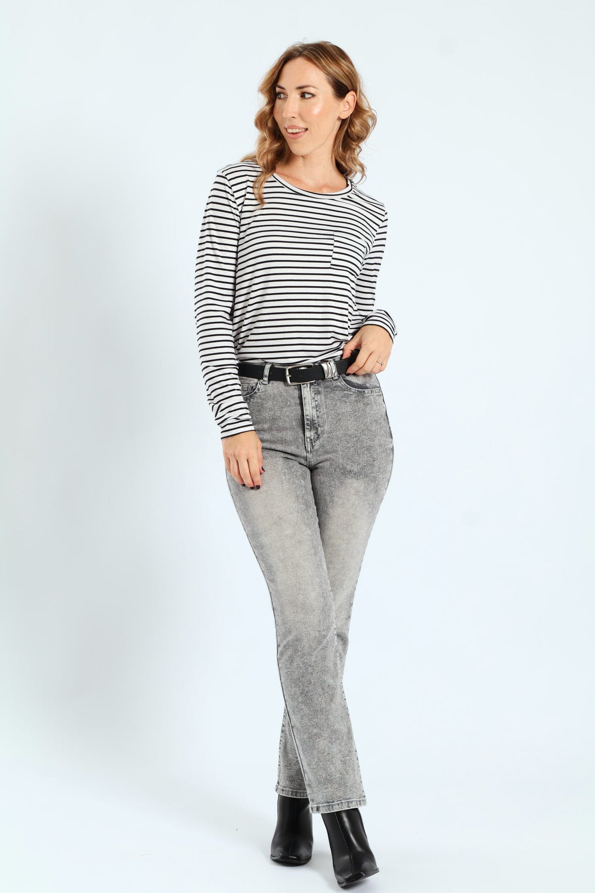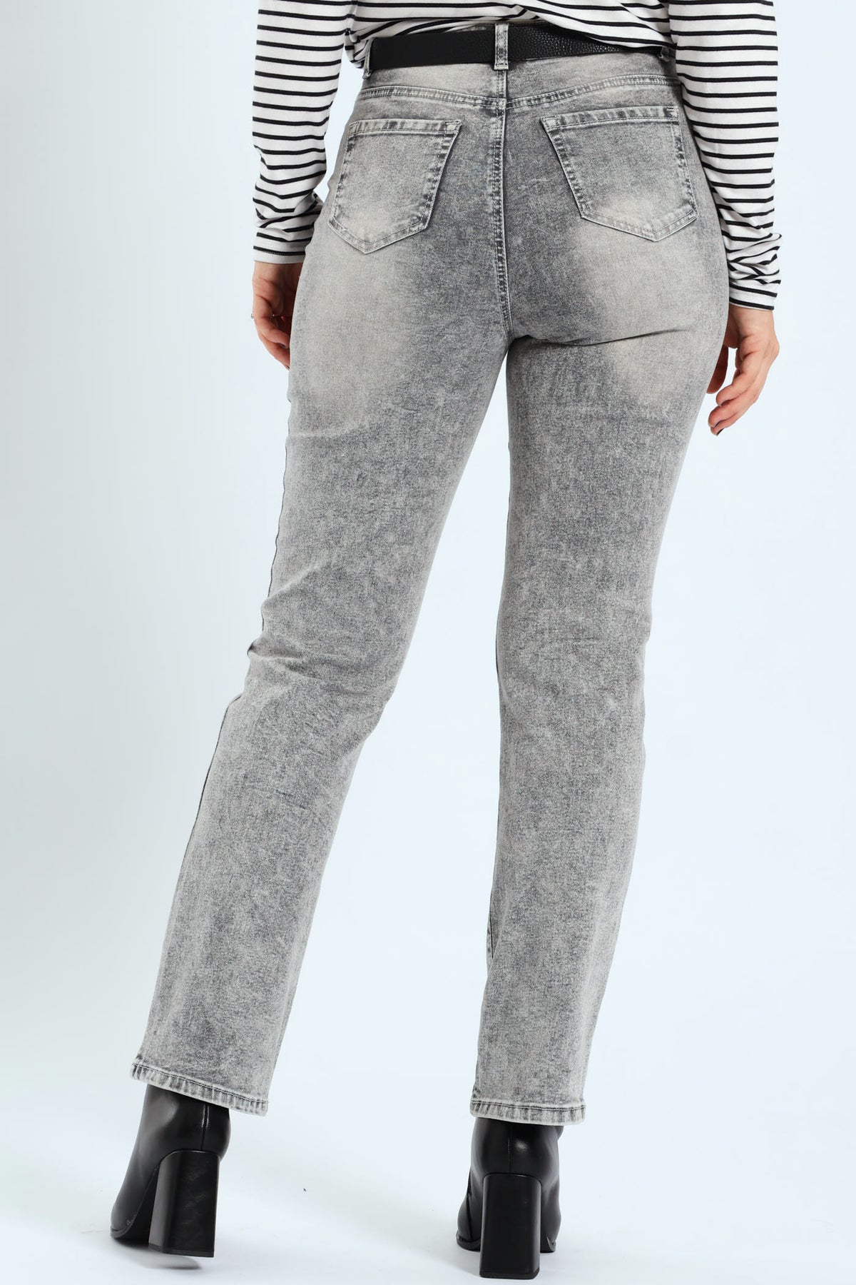 Hi-Rise Belted Straight Leg Denim - Salty Grey