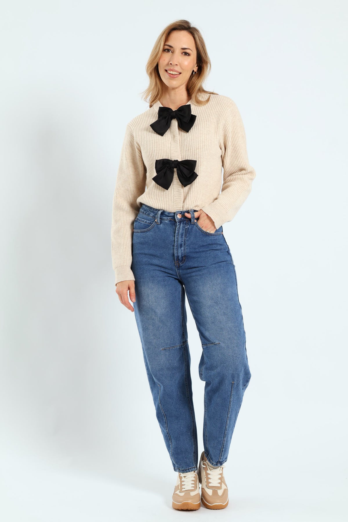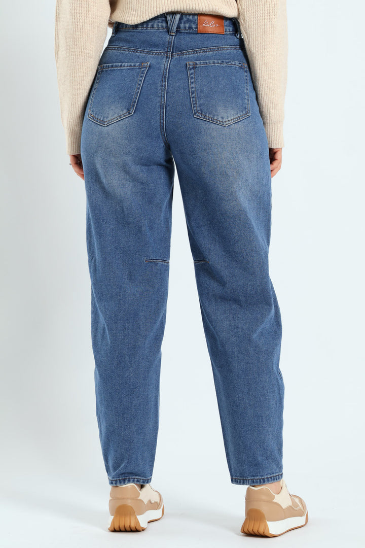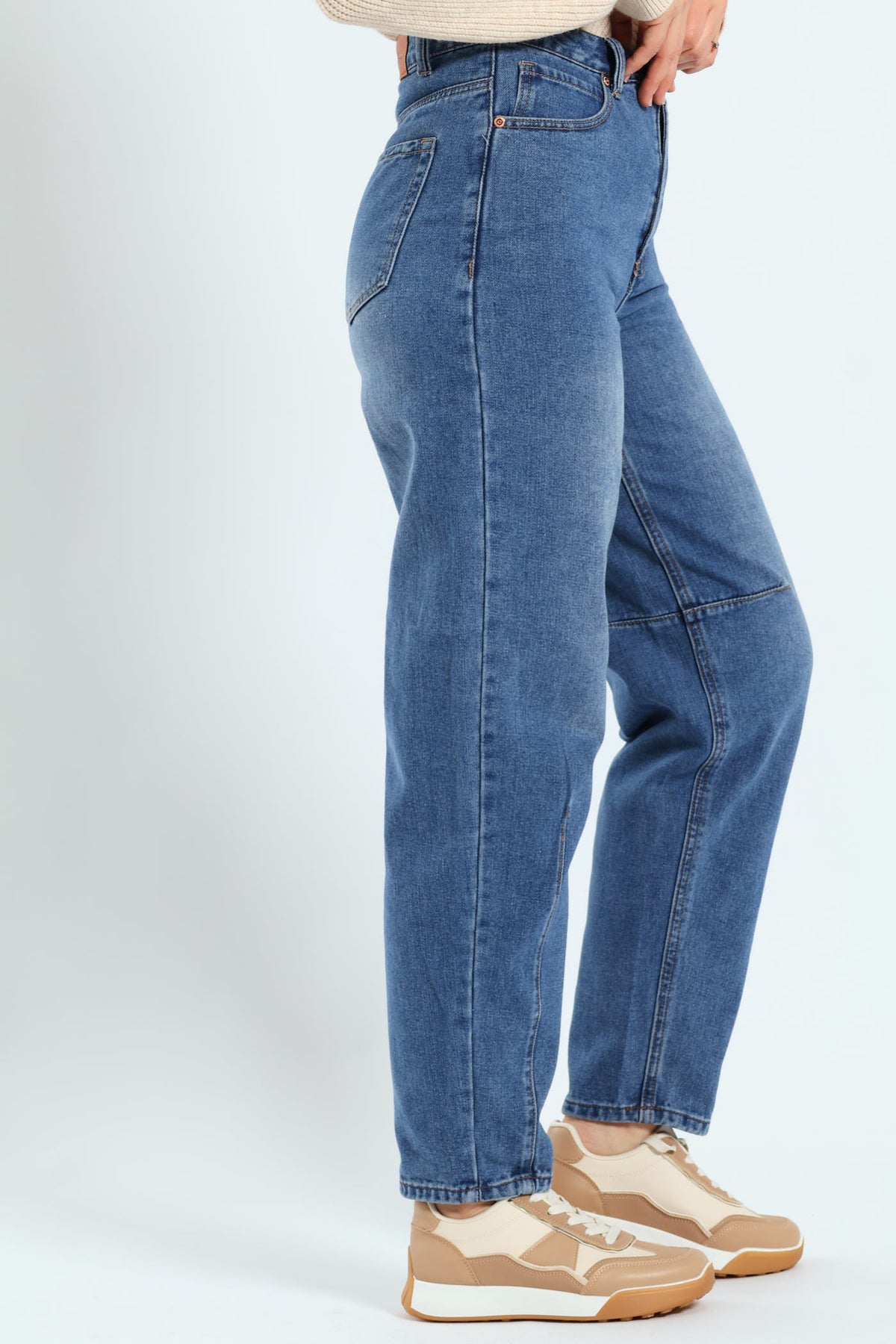 Hi-Rise Classic Barrel Leg Rigid Jean - Mid Wash