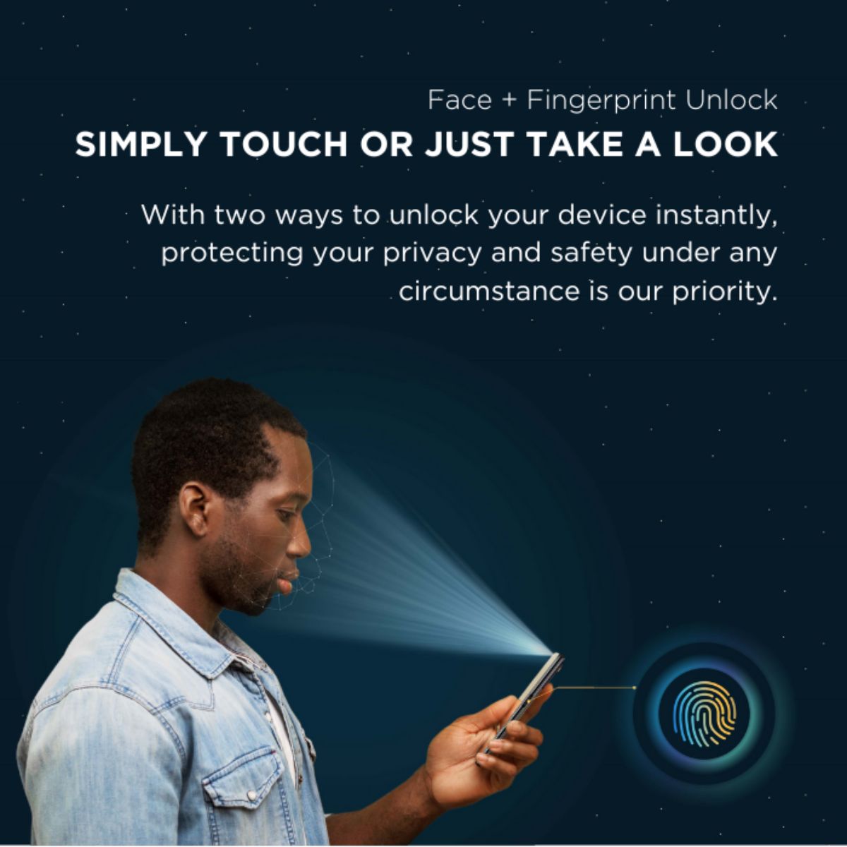 Its 5000mAh battery with 18W quick charge provides the power you need to keep your phone running all day long. Seamlessly unlock your phone in just a glance with its advanced face and fingerprint unlock capabilities.