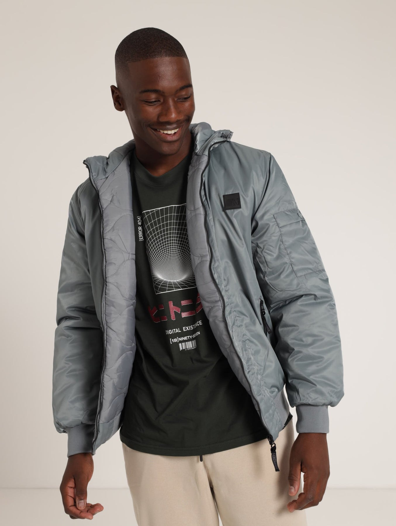 Hooded Bomber Jacket - Grey