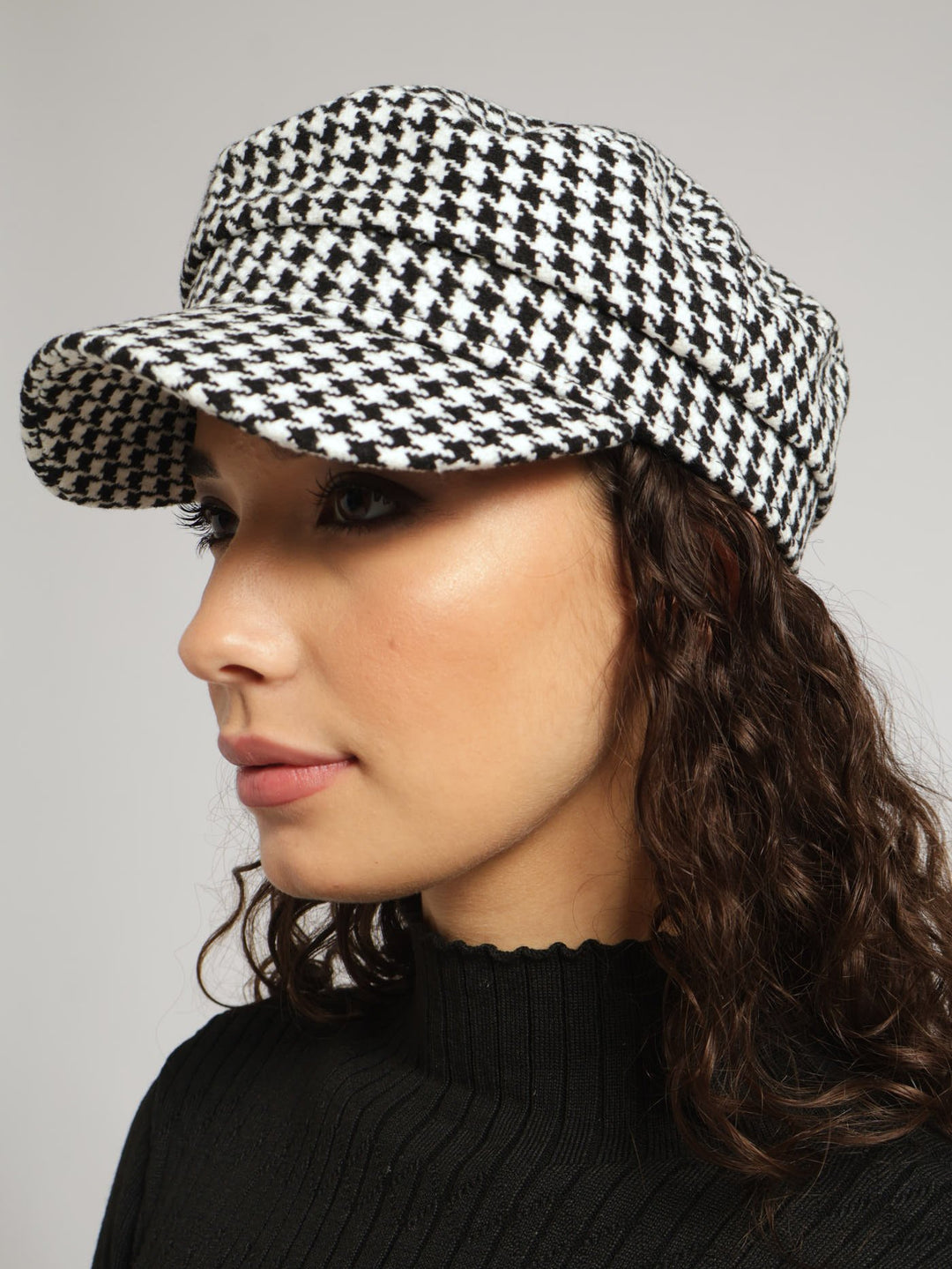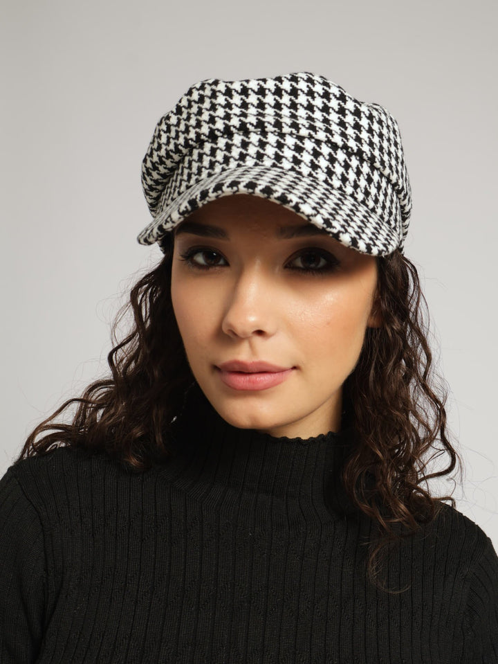 Houndstooth Bakerboy Hat - Black/White