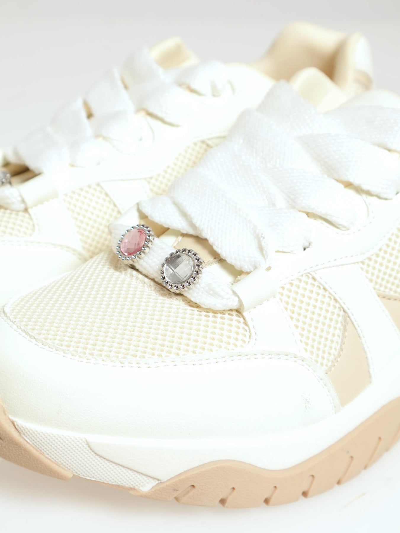 Jaydee Panelled Lace Up Sneaker - White/Beige