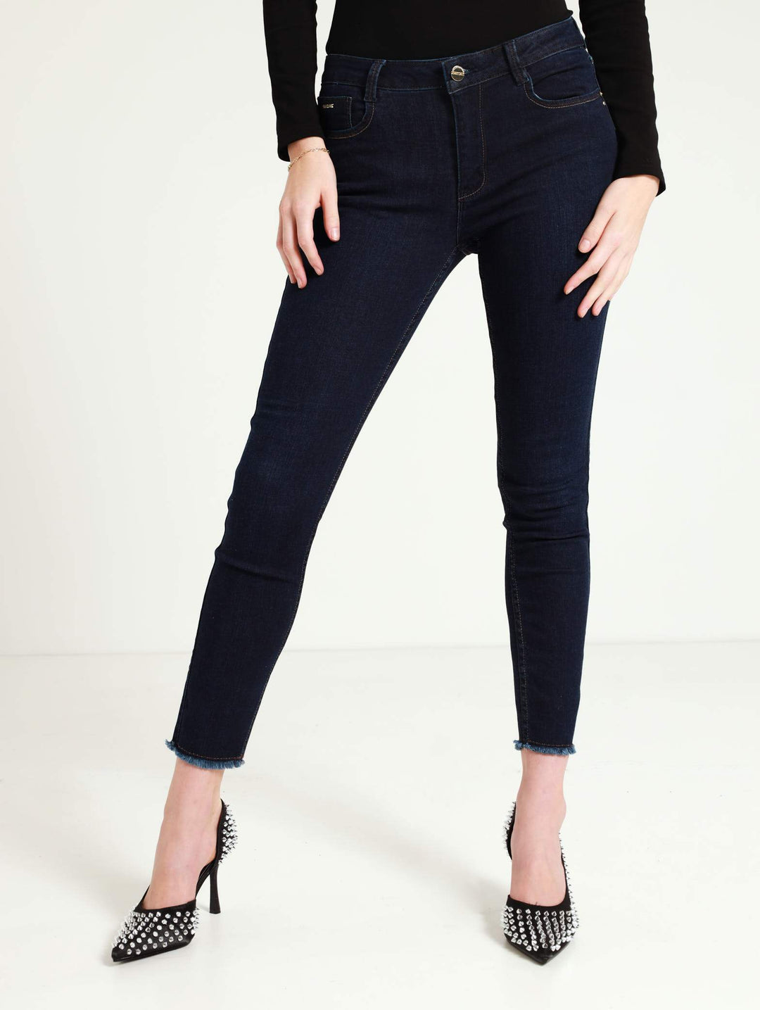 Jon Jon Skinny Denim Jean With Buckle Detail - Dark Blue